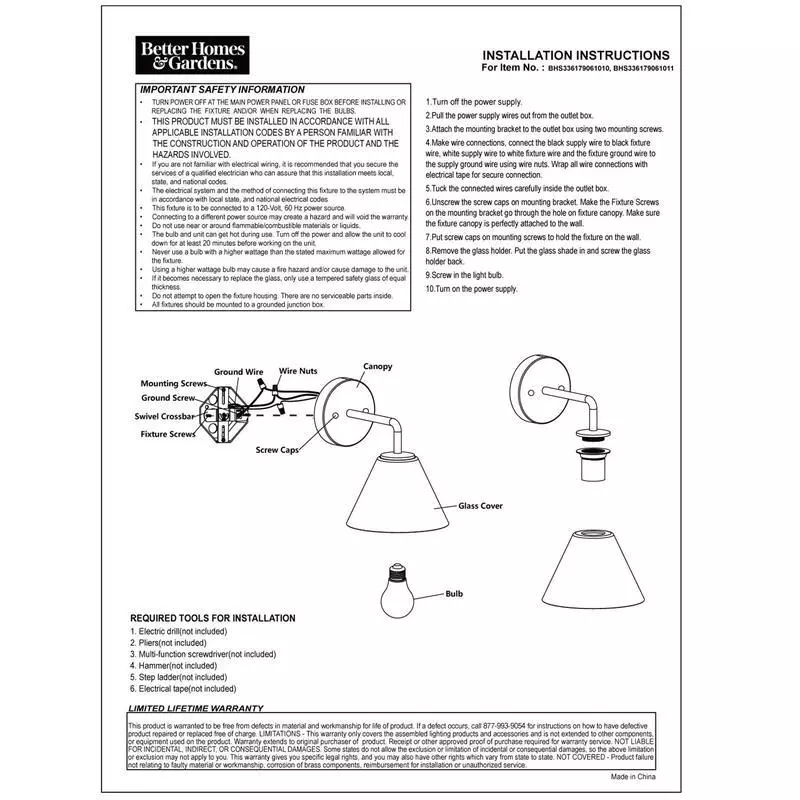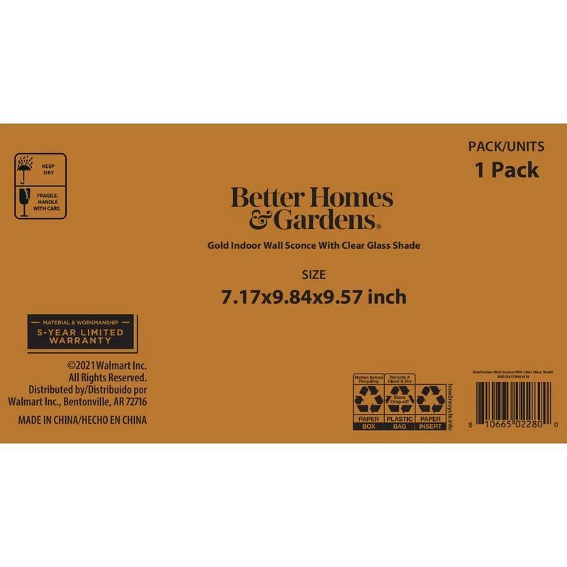 You may also like Simple Design Computer Writing Desk W/ Shelves Durable Compact Easy Assembly New 36.11 USD 38.01 USD Free shipping 5% off Eco-Friendly Computer Desk W/ CPU Shelf Two Drawer Storage Home Office Portable 39.01 USD 41.06 USD Free shipping 5% off Multi-functional Computer Desk 3 Drawers Under Table Shelf Workstation Home New 129.11 USD 135.91 USD Free shipping 5% off 30ft Heavy Duty Waterproof 10/3 30A RV Extension Cord TT-30 Plug UL Listed New 37.06 USD 39.01 USD Free shipping 5% off Rechargeable Wall Mounted Lighted Makeup Mirror 10X Magnifying 3 Color Lights US 38.88 USD 40.93 USD Free shipping 5% off 36in Four Shelf Adjustable Utility Wire Shelving Stainless Steel Storage Rack US 59.48 USD 62.61 USD Free shipping 5% off 10ft Graphite Jig Fishing Rod Lightweight Crappie Pole High Sensitivity Guides 36.08 USD 37.98 USD Free shipping 5% off Handmade Pirate Treasure Chest Vintage Wooden Storage Trunk Lock Keys Decor Box 59.56 USD 62.69 USD Free shipping 5% off 18x24 Picture Frames Set of 5 Posters Certificates Documents Wall Mount Display 59.83 USD 62.98 USD Free shipping 5% off Compact Portable Ironing Board Tabletop Space-Saving Folds Flat Easy Storage New 31.4 USD 33.05 USD Free shipping 5% off 4 Tier Portable Office Workstation Shelving Modern Metal Storage Computer Desk 93.62 USD 98.55 USD Free shipping 5% off Modern Office Computer Desk W/ Storage Shelves Compact Home Workstation Desk New 54.23 USD 57.08 USD Free shipping 5% off The Better Homes & Gardens modern indoor LED fixture is well-designed for your home decoration. The wall mount light has a clear trumpet-shaped glass. The dynamic smooth line design offers a contemporary style for a variety of exteriors. This metal light fixture features a burnished brass finish. This Better Homes & Gardens clear glass Wall Light is a great decoration for your house. The Better Homes & Gardens Wall light is a unique design that can light up your cozy room and allow you to sense the warm atmosphere. The power type of this light is hardwired. This fixture is equipped with one dimmable 40W equivalence A19 clear filament bulb. This decorative bulb is rated to last 13 years based on 3 hours per day use. This light bulb uses only 5 watts of energy to produce light, which is equal to light from a 40W incandescent. That is a 90% savings over traditional lighting - and that means saving on your energy bill every month and with the energy certification to prove its credibility. (BHS336179061010) Better Homes & Gardens Modern Indoor LED Wall Light, Burnished Brass Clear Glass Dimmable 1 A19 5W filament bulb Light output: 450 Lumen ENERGY STAR® certified Size: 7. 17x9. 84x9. You may also like Simple Design Computer Writing Desk W/ Shelves Durable Compact Easy Assembly New 36.11 USD 38.01 USD Free shipping 5% off Eco-Friendly Computer Desk W/ CPU Shelf Two Drawer Storage Home Office Portable 39.01 USD 41.06 USD Free shipping 5% off 30ft Heavy Duty Waterproof 10/3 30A RV Extension Cord TT-30 Plug UL Listed New 37.06 USD 39.01 USD Free shipping 5% off Rechargeable Wall Mounted Lighted Makeup Mirror 10X Magnifying 3 Color Lights US 38.88 USD 40.93 USD Free shipping 5% off 36in Four Shelf Adjustable Utility Wire Shelving Stainless Steel Storage Rack US 59.48 USD 62.61 USD Free shipping 5% off 10ft Graphite Jig Fishing Rod Lightweight Crappie Pole High Sensitivity Guides 36.08 USD 37.98 USD Free shipping 5% off Handmade Pirate Treasure Chest Vintage Wooden Storage Trunk Lock Keys Decor Box 59.56 USD 62.69 USD Free shipping 5% off 18x24 Picture Frames Set of 5 Posters Certificates Documents Wall Mount Display 59.83 USD 62.98 USD Free shipping 5% off Compact Portable Ironing Board Tabletop Space-Saving Folds Flat Easy Storage New 31.4 USD 33.05 USD Free shipping 5% off 4 Tier Portable Office Workstation Shelving Modern Metal Storage Computer Desk 93.62 USD 98.55 USD Free shipping 5% off Modern Office Computer Desk W/ Storage Shelves Compact Home Workstation Desk New 54.23 USD 57.08 USD Free shipping 5% off 12 Cup Coffee Maker Glass Carafe Auto Pause Pour Easy Clean Dishwasher Safe New 25.64 USD 26.99 USD Free shipping 5% off