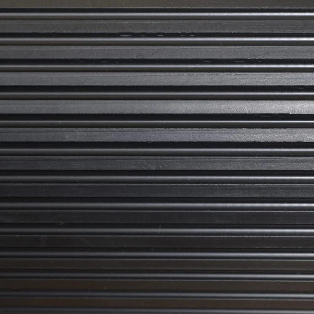 Indoor/Outdoor Rubber Scraper Mat, 36 in. x 20 ft, Black RUBBER SCRAPER MAT: Corrugated ridges trap mud, water, sand, and dirt to keep floors mess-free and provide traction – designed for high traffic areas and able to withstand most indoor and outdoor environments INCLUDES: One heavy-duty, commercial grade 36 inch x 20 foot black rubber scraper mat made with a proprietary blend of rubber materials COMMERCIAL USE: Perfect for commercial entry mats, industrial floor mats, and outdoor non-slip garage floor mats RESIDENTIAL USE: Place in your hall, entryway, or outside your patio doorway to help clean shoes and paws to keep mud, sand, and dirt outside EASY TO CLEAN: Simply spray with a hose to remove dirt and mud from the doormat. This mat does not have a fabric backing or liner, so you don't have to worry about a soggy mat. From slick rain boots to muddy paws, protect your floors and create a safe walking surface with Dimex Indoor/Outdoor Rubber Scraper Mats. Designed with corrugated ridges to trap mud and dirt - your flooring is protected while offering traction for walking on what could have otherwise been a slippery surface. Crafted with a proprietary blend of rubber material, this commercial grade black rubber scraper mat is built to withstand frequent use and most weather conditions without deteriorating. Suitable for both commercial and residential use - collect dirt and mud from shoes in breezeways, mudrooms, and office entrances. Provide a non-slip surface in garages and industrial flooring. Place outside your patio doorway to collect dirt from shoes and paws before they enter your home. When the mat is dirty, simply spray with a hose to clean. With quality, durability, and safety in mind – the Dimex Rubber Scraper Mats have your floors covered.