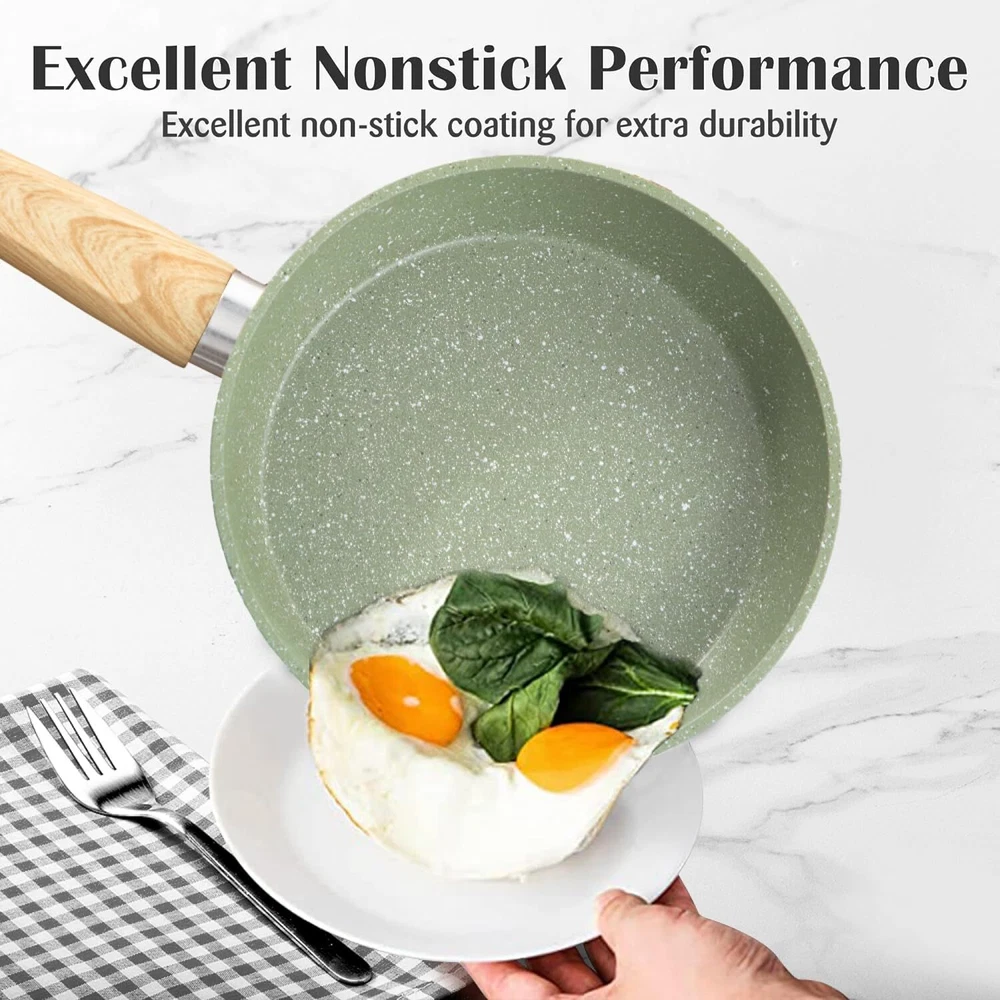 ๐๐ฏ๐๐ง ๐๐๐๐ญ๐ข๐ง๐ ๐๐๐๐ก๐ง๐จ๐ฅ๐จ๐ ๐ฒ: Our pots and pans set is excluding of PFOS,PFOA, The set's even heating technology guarantees uniformly cooked meals. No more hot spots or unevenly cooked food โ every dish is a masterpiece. Nonstick pot set for precise cooking ๐๐ ๐๐ข๐๐๐ ๐๐ซ๐๐ง๐ข๐ญ๐ ๐๐จ๐จ๐ค๐ฐ๐๐ซ๐ ๐๐๐ญ ๐๐ง๐๐ฅ๐ฎ๐๐๐ฌ: 8-inch fry pan / 11-inch fry pan / 9.7-inch Deep Fry Pan with lid / 1.5Q saucepan with lid / 3Q casserole with lid / 5Q casserole with lid / 2 pcs silicone utensils. Different size of non stick pots and pans set meets all your need for daily cooking ๐๐๐ฌ๐ฒ ๐ญ๐จ ๐๐ฅ๐๐๐ง: Say goodbye to scrubbing and soaking. Our cookware features a smooth, easy-to-clean surface, ensuring that tidying up is as simple as enjoying your delicious . Easy to clean granite pots and pans ๐๐จ๐ง๐ฌ๐ญ๐ข๐๐ค ๐๐จ๐ญ๐ฌ ๐๐ง๐ ๐๐๐ง๐ฌ ๐๐๐ญ: The non-stick material allows light oil and less fumes, and the pan set is wear-resistant and lightweight, which enhances the experience of stir-fry cooking and makes cooking healthier On Dec 15, 2024 at 18:42:38 PST, seller added the following information: