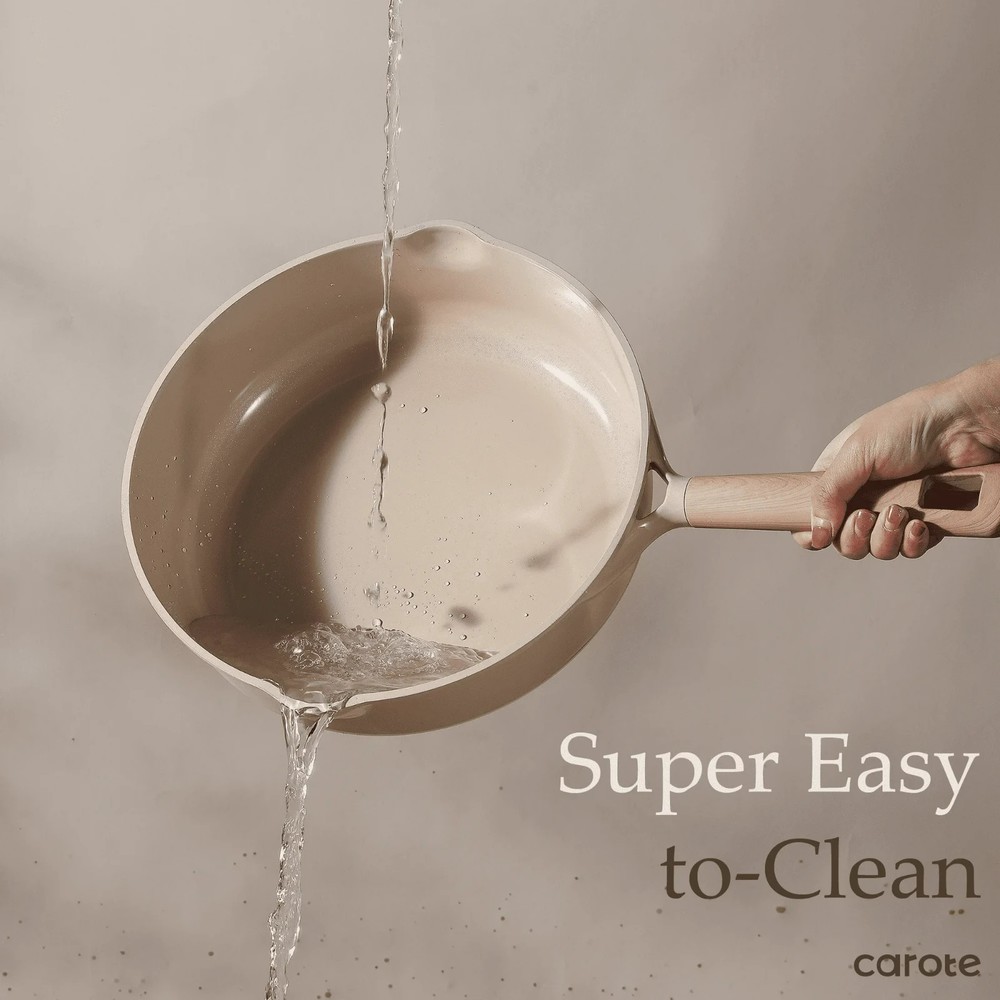 Carote Healthy Ceramic NonStick Jumbo Cooker with Induction 11" Non-Toxic Saute Pan With Lid Cover, Bon Appetit, Taupe, 5QT Product details STURDY BODY - Made of heavy-duty cast aluminum, this nonstick frying pan resists warping and wobbling while heating quickly and evenly. HEALTHY COOKING -This saute pan features a premium taupe ceramic nonstick coating and a stylish design, enabling effortless cooking. Food slides off easily, and less oil or butter is needed, promoting healthier cooking habits. EASY TO CLEAN - The taupe reinforced ceramic nonstick surface and bakelite handle with soft touch makes cleanup a breeze, saving time and effort in the kitchen COMFORTABLE HANDLE - Sturdy ergonomic handle with soft touch finishing for comfortable and safe cooking COMPATIBLE FOR ALL STOVES -Stainless steel induction base is suitable for gas,inducton,electric,ceramic stoves. VISIBLE COOKING -Tempered transparent glass lid allows for easy monitoring of cooking progress As seen in Walmart stores 5.0QT Jumbo Cooker,11 Inch/28cm in diameter Features Nonstick, Induction Compatible Cleaning, Care & Maintenance Just gently wipe it with a paper towel or rinse it with water Assembled Product Dimensions (L x W x H) 19.09 x 11.42 x 3.35 Inches