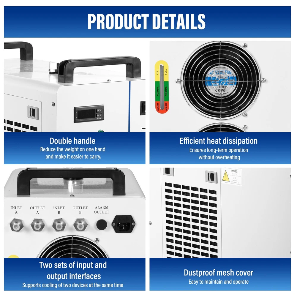 Store category Sign Up Now ! You may also like Product Description Bullet Points: Suitable for Various Models: Suitable for CNC machines, this water chiller boasts an extra-long 8m water pipe for improved reach and great engraving and cutting performance. Its efficient cooling system ensures next-levels precision. Great Cooling Efficiency: Equipped with a high-powered 0.81hp compressor, this water chiller can cool two tubes at a flow rate of 3.43gpm/h and maintain up to 150W during use. Its impressive cooling capacity of 5596Btu/hr and use of standard refrigerants ensure maximum efficiency and reliability for all your cooling needs. Reduced Water Loss: The closed 7L tank design in this water chiller reduces evaporation and provides extended cooling. The large tank capacity and clear viewing window allows easy monitoring of water levels, signalling the need for refilling only when necessary. Temperature Stability: With our water chiller's constant temperature mode and intelligent mode, you can rest assured that your cooling components will be protected from condensation during high summer temperatures. Featuring double temperature control modes, it maintains precise 0.3C accuracy, even with room temperature changes. Optimized Cooling Performance: Boost productivity with our water chiller's efficient double cooling, which cools two engraving machines simultaneously with ultra-fine temperature control. Features multi-effect safety with flow and over-temperature alarms, and compressor overcurrent protection for added peace of mind. Experience invigorating icy plunges with our Cold Plunge Chiller! Features include 8m extra-long water pipe, maximum flow rate of 3.43gpm/h, clear viewing window, and double temperature control mode. Equipped with two sets of inlet and outlet for easy setup. Take the plunge! Specification: Product name: water chiller Model: CW5202 Product size: about 56x29x43 cm/22.05x11.42x16.93 inches Water tank capacity: 7 L Voltage: 110V AC 60 HZ Packaging size: about 64x38x53 cm/25.2x14.96x20.87 inches Packaging weight: about 28670 g Packing List: Water chiller x1 Note: 1. Due to the different display and lighting effects, the actual color of the product may be slightly different from the color shown in the picture. Thanks! 2. Due to manual measurement, a measurement deviation of 1-3cm is allowed. Payment Delivery details Terms of sales About us Feedback & DSRs Payment Before you palce an order, please kindly make sure that you have a paypal account. We accept PAYPAL payment only. Payment should be completed within 2 days after auction closed, or unpaid dispute will be filed for an closing auction. An unpaid case will be filled after 4 days. Delivery details We ship to your eBay address. Each package will be shipped to US by UPS Regular Parcel with tracking number. Please check your shipping address carefully before checkout, it can't be changed if order completed. All items will be shipped within 1-2 business day upon receipt of payment.Orders placed on weekend will be shipped within 3 days. If you do not receive your item in 7-10 business days.please contact us immediately for further assistance. We will be responsible for any damages or losses incurred in the shipping process. About us We maintain high standards of excellence FIVE STAR and strive for 100% customer satisfaction! Positive Feedback is very important to us. We hope that you contact us immediately Before you give us neutral or negative feedback, so that we can satisfactorily address your concerns. We promise to offer the lowest price and high quality produce. Our working time: From Monday to Friday(9:30 am to 18:00pm), we don't working on holidays ,hope you can understand and know that , thank you. Please always talk to us via ebay Message. We appreciate your business and look forward to growing our e-Bay sales with satisfied customers. Feedback Contact us If you have any questions, please feel free to contact with us by ebay Message during our business hours ( 9:30a.m. to 5:30 p.m.), or email us through eBay, we will try our best to help you to resolve it. For any presale or after-sale questions,please do feel free to email us! Due to the time difference, each email will be replied within 1 working day,and weekend will be delayed a bit. Feedback