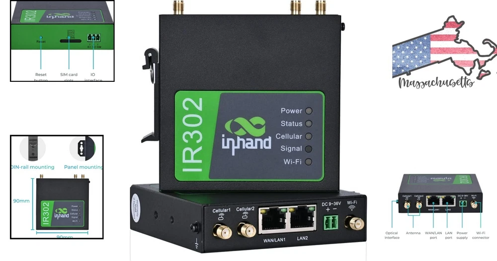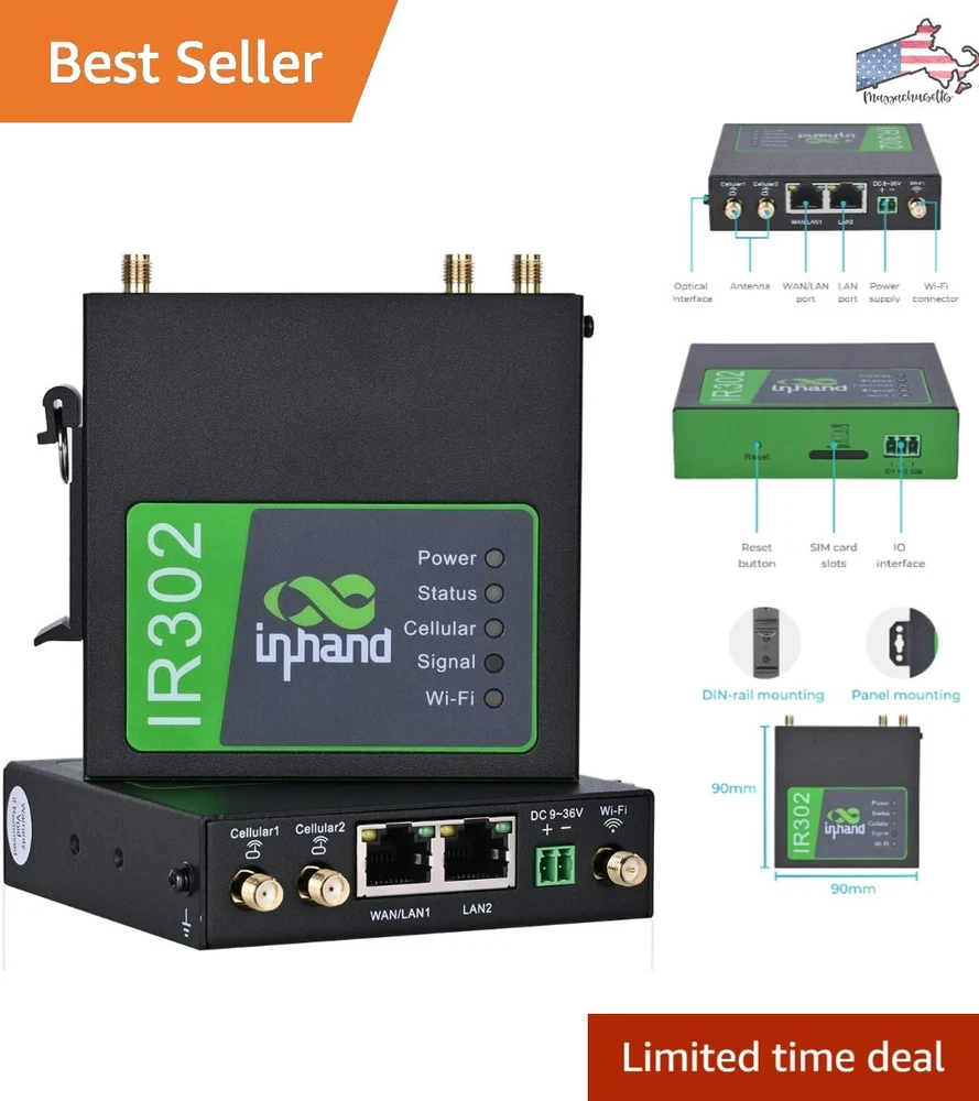 Industrial IoT 4G LTE VPN Cellular Router - Dual SIM Card Slots, Wi-Fi, Cloud Management ‹ › ‹ › ‹ › ‹ › ‹ › ‹ › ‹ › ‹ › ‹ › ‹ › ‹ › Industrial IoT 4G LTE VPN Cellular Router -Dual SIM Card Slots, Wi-Fi, Cloud Management Features: Working band: LTE CAT4, FDD: B2/ B4/ B5/ B12/ B13/ B14/ B66/ B71, WCDMA: B2/ B4/ B5 Dual sim card slot, use with any mobile carriers using the same frequency bands Industrial rugged metal casing, compact size for mass deployment Transmission Distance can reach up to 80 meters Supports wired network access, high speed LTE CAT4, and Wi-Fi connection Strong security protection with VPN, firewall, and user authorization management Efficient remote management with InHand Device Manager cloud platform 3 years warranty and free technical support Benefits: Wide coverage and industrial design for various industries and applications Works well in harsh environments with temperature range -4 ℉ to 158 ℉ (-20 to 70℃) Multiple means for internet access including LAN port, WAN/LAN switchable port, and Wi-Fi access High reliability with watchdog and multi-layer link detection mechanisms Easy setup with SIM card insertion and browser configuration Secure data transmission and network access with firewall protections and VPN support Why choose our Industrial IoT 4G LTE VPN Cellular Router? Are you looking for a reliable and secure solution for your industrial IoT needs? Our Industrial IoT 4G LTE VPN Cellular Router is the perfect choice. With dual SIM card slots, Wi-Fi connectivity, and cloud management, this router offers wide coverage and industrial-grade design for various applications. It provides high-speed internet access, strong security protection, and efficient remote management, making it the ideal solution for your business or outdoor use. Don't settle for less when it comes to your connectivity needs - choose our Industrial IoT 4G LTE VPN Cellular Router for reliable performance and peace of mind. Shipping Free & Fast Shipping - We offer free shipping to most of the USA with a normal delivery time of 3-7 days. However, due to the current situation, additional delivery time (up to 3 weeks) may be required for some items. Alternative Carriers - We may use alternative carriers (e.g. USPS, FedEx, UPS, etc.) to ensure your package arrives safely and on time. Due to the use of multiple carriers, we are unable to provide a tracking number automatically. Handling Time - Orders are processed and shipped within 1-2 business days of receiving cleared payment. Shipping Restrictions - Shipping to Alaska, Hawaii, Puerto Rico, Guam, and other US territories may incur shipping charges or delivery restrictions. Please contact us before ordering, or your order can be refunded/cancelled. State Restrictions - There may be restrictions based on your state of purchase. For example, certain items may not be shipped to California due to state regulations. Contact for Tracking Updates - If you require tracking updates or have any concerns about the delivery of your order, please feel free to contact us, and we will be happy to assist you. Return 30-Day Hassle-Free Returns - We want you to be completely satisfied with your purchase. If you are not, you can return the item within 30 days of receiving it for a full refund or exchange. Easy Return Process - To start a return, simply contact us and we will provide you with a prepaid return shipping label and detailed instructions. Restocking Fee - There are no restocking fees for returns. However, the buyer is responsible for return shipping costs if the return is not due to a seller's error. Refund Processing Time - Refunds will be processed within 5 business days of receiving the returned item in its original condition. Payment We accept all major credit cards, PayPal, and Apple Pay for your convenience. Your payment information is secure and encrypted to ensure a safe and seamless transaction. Please complete your payment within 3 days of purchase to avoid any delays in shipping. Feedback Your feedback is extremely important to us. We strive to provide the best products and customer service possible. If you are satisfied with your purchase, please take a moment to leave us a positive review. If you have any concerns or issues with your order, please contact us before leaving negative feedback. We are committed to resolving any problems and ensuring your satisfaction. Contact Us If you have any questions or concerns, please feel free to reach out to our customer support team. You can contact us through the eBay messaging system. We are available Monday to Friday, 9:00 am to 5:00 pm EST, and we will do our best to respond to your inquiry within 24 hours. Thank you for supporting our small family business!