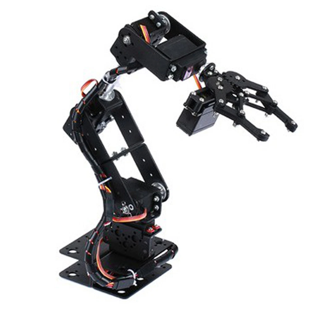 Feature: 1. 6DOF Manipulator is widely used in college teaching, IDY production. 2. Its power system consists of 6 servo motors, which can realize the demonstration of front and rear, up and down and left and right gripping of the robot. 3. All bracket fittings are made of 2mm thick aluminum plate, which effectively improves the stability of the robot itself. 4. Imported cup bearings are used at the steering joints, which not only makes the steering more flexible, but also allows the steering of the steering gear to be at the same center. 5. The chassis is in the form of a disc, which makes the manipulator turn left and right more flexible and smooth. Specification: Item Type Mechanical Arm Color Black Model MG996R analog steering gear Working voltage 4.8V-7.2V No-load current 100mA Machine torsion 10kg.cm Limit angle 180° Wire length 30cm Gear material Metal gear Dead time 5uS Steering gear performance General Package List: 6 x MG996 Analog Steering Gear 1 x Cable Tie 5 Packs Screw Nut Fittings 3 x Extension Cord 1 x Flange Rod 3 x Flange Bearing 6 x Metal Steering Wheel 1 x Mechanical Arm 1 x Beam 1 x Different U-Shaped Bracket 2 x L-Shaped Bracket 2 x Long U Bracket 4 x Multi-Function Bracket 1. Our listing price includes the value of goods,packaging cost,and export taxes,not including international duties. 2. duties,taxes,and charges are not included in the item price or shipping fee. 3. T he duties are buyers' responsibility .Please check with your country's customs office determine what these additional costs will be prior to your purchase. 4. All disputes arising from the duties will be submitted to ebay for solution. 1. Any questions, pls. contact us via ebay message or email us. We will reply your message within 48 hours. If you do not receive our reply within 48 hours, pls. post a message again beuse sometimes our message system may block some emails. 2. If you are satisfied with our service, pls. kindly leave us a positive feedback and give us the Detailed Seller Rating with all " 5 " in very area 3. Our aim is to provide Level Customer Service, your recognition will encourage us greatly and serve you better. We strive to keep all our customers satisfy. We will do our up most to exceed your expectations in customer service, communition and dispatching of your orders.