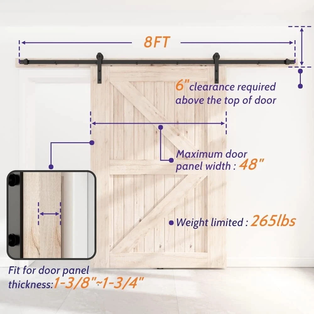 Industrial Style 8FT Barn Door Hardware Kit - Quality Tested for Quiet Operation ‹ › ‹ › ‹ › ‹ › ‹ › ‹ › ‹ › ‹ › ‹ › ‹ › Industrial Style 8FT Barn Door Hardware Kit Quality Tested for Quiet Operation Premium Construction: Superior Materials: Crafted from 1/4” thick carbon steel, this hardware kit supports a maximum load of 265 lbs, ensuring robust and reliable performance. Enhanced Durability: Featuring POM wheels that are stronger than plastic or nylon, along with stable carbon steel spacers, this kit is designed for longevity. Corrosion Resistance: Finished with a spray black powder coat for an anti-rust surface that looks sleek and sophisticated. Effortless Installation: Pre-drilled holes spaced 16 inches apart, along with detailed step-by-step instructions, simplify the installation process. Complete your hardware setup in half an hour with the help of a partner. If you encounter any issues or missing parts, our team is here to assist you anytime via Amazon. Versatile Compatibility: This 8FT barn door hardware kit accommodates door panels up to 48” wide and thicknesses from 1-3/8" to 1-3/4". For thinner panels, a 5mm black spacer pad is included; for thicker options, longer bolts can be purchased if needed. Ensure a snug fit by considering doorway trims; additional materials may be necessary for installation. Why Choose Our Hardware Kit? Invest in an exceptional barn door hardware kit that has undergone stringent quality inspections and passed a rigorous 100,000 times opening and closing test. With our manufacturer pricing, you truly get unparalleled value without compromising quality. Upgrade your space effortlessly with our industrial-style barn door hardware. Included in Your Kit: (2) 4FT Barn door tracks (6) Wall spacers with leg screws (2) Door stoppers (2) Barn door rollers with bolts and nuts (2) End caps (1) Floor guide (1) Step-by-step manual Note: Only hardware kit included; barn doors are not included. Shipping Free & Fast Shipping - We offer free shipping to most of the USA with a normal delivery time of 3-7 days. However, due to the current situation, additional delivery time (up to 3 weeks) may be required for some items. Alternative Carriers - We may use alternative carriers (e.g. USPS, FedEx, UPS, etc.) to ensure your package arrives safely and on time. Due to the use of multiple carriers, we are unable to provide a tracking number automatically. Handling Time - Orders are processed and shipped within 1-2 business days of receiving cleared payment. Shipping Restrictions - Shipping to Alaska, Hawaii, Puerto Rico, Guam, and other US territories may incur shipping charges or delivery restrictions. Please contact us before ordering, or your order can be refunded/cancelled. State Restrictions - There may be restrictions based on your state of purchase. For example, certain items may not be shipped to California due to state regulations. Contact for Tracking Updates - If you require tracking updates or have any concerns about the delivery of your order, please feel free to contact us, and we will be happy to assist you. Return 30-Day Hassle-Free Returns - We want you to be completely satisfied with your purchase. If you are not, you can return the item within 30 days of receiving it for a full refund or exchange. Easy Return Process - To start a return, simply contact us and we will provide you with a prepaid return shipping label and detailed instructions. Restocking Fee - There are no restocking fees for returns. However, the buyer is responsible for return shipping costs if the return is not due to a seller's error. Refund Processing Time - Refunds will be processed within 5 business days of receiving the returned item in its original condition. Payment We accept all major credit cards, PayPal, and Apple Pay for your convenience. Your payment information is secure and encrypted to ensure a safe and seamless transaction. Please complete your payment within 3 days of purchase to avoid any delays in shipping. Feedback Your feedback is extremely important to us. We strive to provide the best products and customer service possible. If you are satisfied with your purchase, please take a moment to leave us a positive review. If you have any concerns or issues with your order, please contact us before leaving negative feedback. We are committed to resolving any problems and ensuring your satisfaction. Contact Us If you have any questions or concerns, please feel free to reach out to our customer support team. You can contact us through the eBay messaging system. We are available Monday to Friday, 9:00 am to 5:00 pm EST, and we will do our best to respond to your inquiry within 24 hours. Buy it now and enjoy a pleasant shopping experience! UPC: Not Set Model: Not Set Unit Quantity: 17.59 lb Suitable For: Barn Door,Sliding Door Material: Carbon Steel,POM Features: Easy to Install,Smooth,Quiet Smart Home Protocol: Not Set Smart Home Compatibility: Not Set Brand: Unbranded Type: Barn Door Hardware Kit Color: Black Finish: Powder Coat Item Width: Not Set Item Height: Not Set Item Length: Not Set Item Diameter: Not Set MPN: Not Set Number in Pack: 1 Battery Size: Not Set Style: Industrial Country/Region of Manufacture: Not Set Item Depth: 3.54 in Core Type: Not Set Item Weight: 17.59 lb Manufacturer Warranty: Not Set Unit Type: lb Fixings Supplied: Not Set Battery Required: Not Set