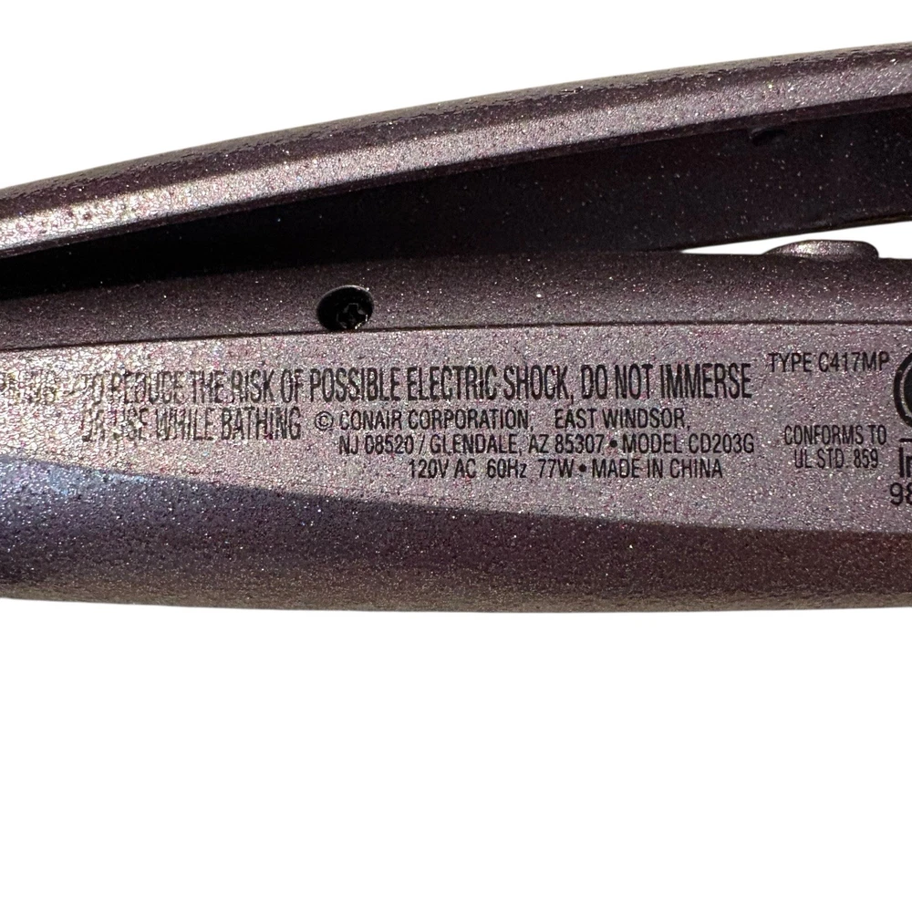 Heating Plate Material:TitaniumType:Curling IronBarrel Size:3/4inFeatures:Indicator Light, Auto Shut-Off, Adjustable Heat SettingsBrand:ConairColor:PurpleHair Type:All Hair TypesSize:Travel SizeUPC:Does not applyMPN:CD203NNumber of Temperature Settings:2Model:CD203NPower:65WMaximum Temperature:400fgtin13:Does not applyPower Source:Electric