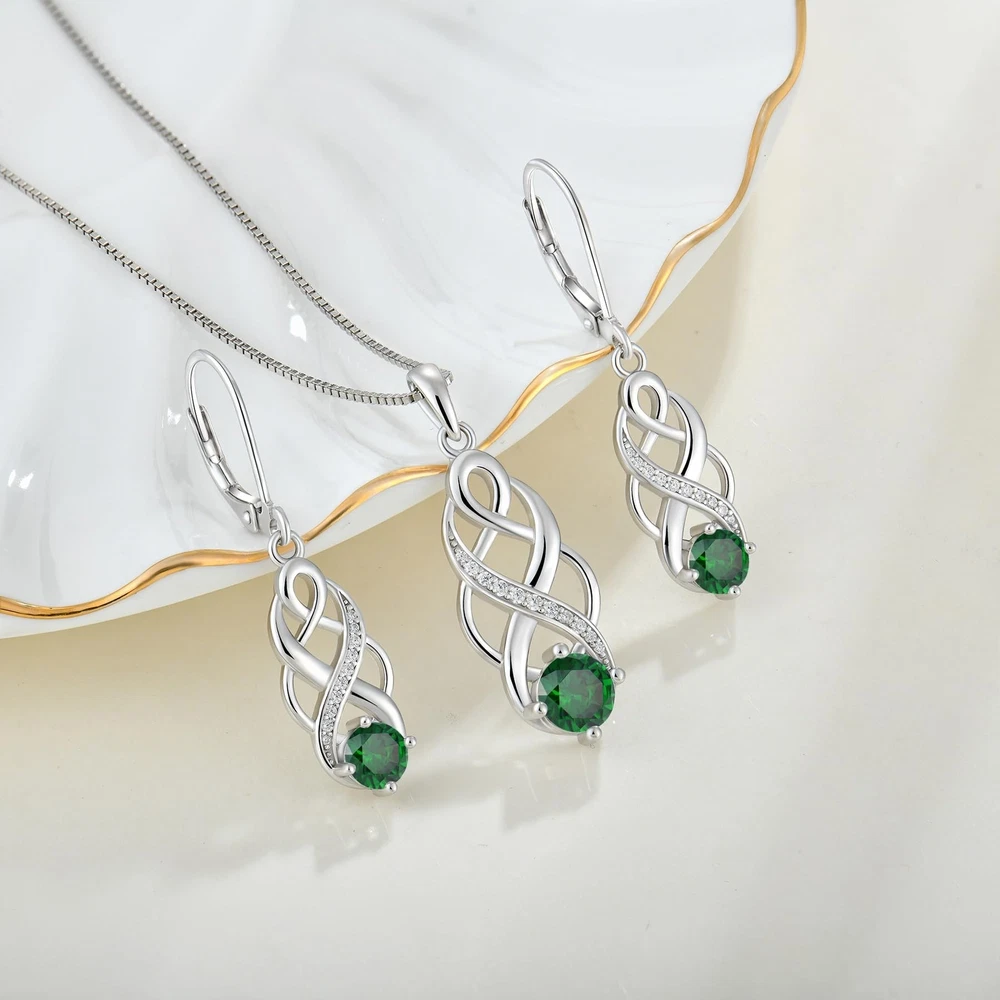 Infinity Irish Celtic Knot Jewelry Set for Women Emerald Necklace & Earrings May Birthstone Jewelry Gifts Product Details Department : womens Date First Available : April 9, 2024 Brand, Seller, or Collection Name: Lwsary Metal stamp: 925 Metal: Sterling Silver Material: Sterling Silver Gem Type: Cubic Zirconia Setting: Post Clasp: Lobster clasp Back finding: Lever Back