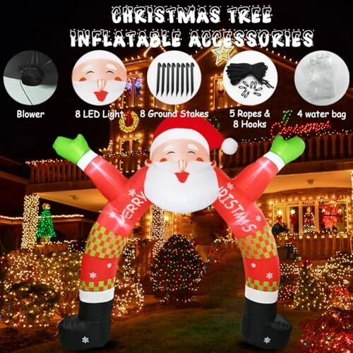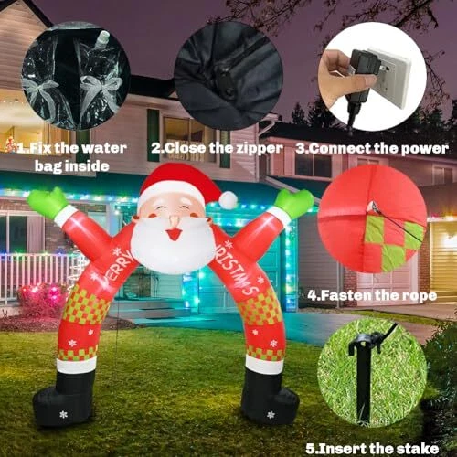 30 Days Return Policy Fast Delivery Trusted seller Inflatable Outdoor Christmas Decorations, 11 ft Lighted Inflatable Christmas Santa Archway with Build in LED Light, Outdoor Indoor Holiday Blow Up Decor for Lawn Home Party,Yard, Garden Decor Product Description ? 11FT Christmas Inflatable: The inflatable Christmas DecorationIncludes everything you need, Inflatable Fan,Ground Stakes and Tethers, Sandbag,Transformer adapter. Easy installation without worrying about accessories. Create a Christmas atmosp for your Christmas party and bring you more festive joy. ? Premium Materials: This Inflatable Christmas Santa Archway outdoor is made of polyester which is waterproof and durable enough, and it's not easy to be pierced by sharp and hard things.The build-in sandbag at the bottom enhances the stability of this giant decoration. You can have the inflatables up the entire christmas. ? Easy & Safe to Use: Connect to the power supply to inflate, make sure the blower is facing outwards, and it will blow up within minutes. with the included ground stake, the rope can hold it perfectly in the yard, no need to worry about it with being blown away by the wind. ? Built-in LED Lights: Christmas Santa Archway inflatable decoration comes with bright built-in LED lights. It is bright enough for your neighbors and friends to quickly discover this adorable decoration even at night. bringing a strong Christmas atmosp to your home and yard, making your guests and passers-by brighten up. ? Perfect Christmas Decor: Christmas inflatable arch will make holiday decorating super easy with classic Christmas elements d to never go out of style. It will be a huge hit in the neighborhood, suitable for outdoor, yard, garden, lawn, front door, porch, school, amusement park, holiday party, etc. Shipping Returns Payment Shipping Shipping is FREE to all addresses other than APO/PO boxes in the lower 48 states. All our stock ships from US-based warehouses. Shipped via USPS or UPS (depending on location and package weight) Unless stated otherwise, all orders will ship within 24-72 hours of your payment being processed. Check our feedback to see the great reviews of FAST shipping we offer. Returns As our valued customer, we will do our best to make sure the product you receive arrives to you on time and as expected. If you are not satisfied with your purchase, please contact us within 30 days of receiving your order to process a return. Payment We currently accept payment via eBay managed payments only. Once payment is cleared, we will dispatch your shipment within 1-3 business days. Please refer to the "Shipping" tab for more information regarding shipping speed to your destination.