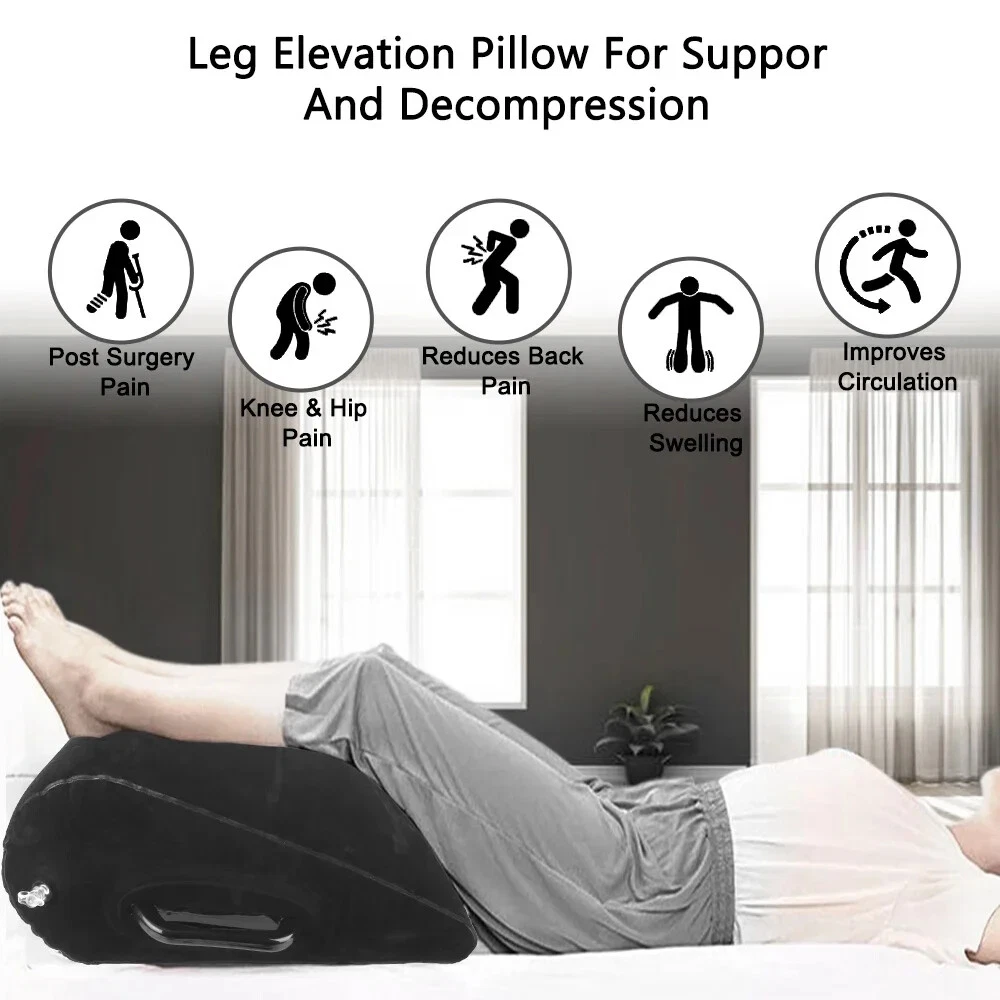Features: Comfort: Leg lift cushions provide a comfortable, supportive surface for your legs and feet, which can help reduce pain, swelling, and discomfort caused by a variety of conditions. Versatility: Leg lift cushions can be used in a variety of settings and situations, from recovery after surgery or injury, to long periods of sitting or standing at work. Convenience: Leg lift cushions are portable and lightweight, making them easy to move from your home to your office or even take with you on trips. Health Benefits: Leg lift cushions help improve circulation by elevating your legs, which can help reduce the risk of conditions like varicose veins, deep vein thrombosis, and blood clots. Simple to inflate and deflate with air-sealed valve. Support up to 300 lbs. Cost-effective: Leg lift cushions are an affordable and easy-to-use solution for improving mobility and reducing pain and discomfort associated with a variety of conditions. Specification: Size: As the picture shown Material: PVC Color: Black Package Included: 1 x Inflatable Pillow