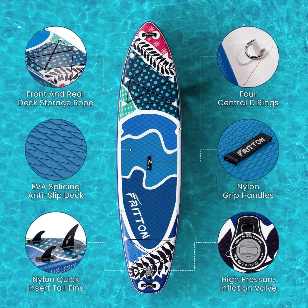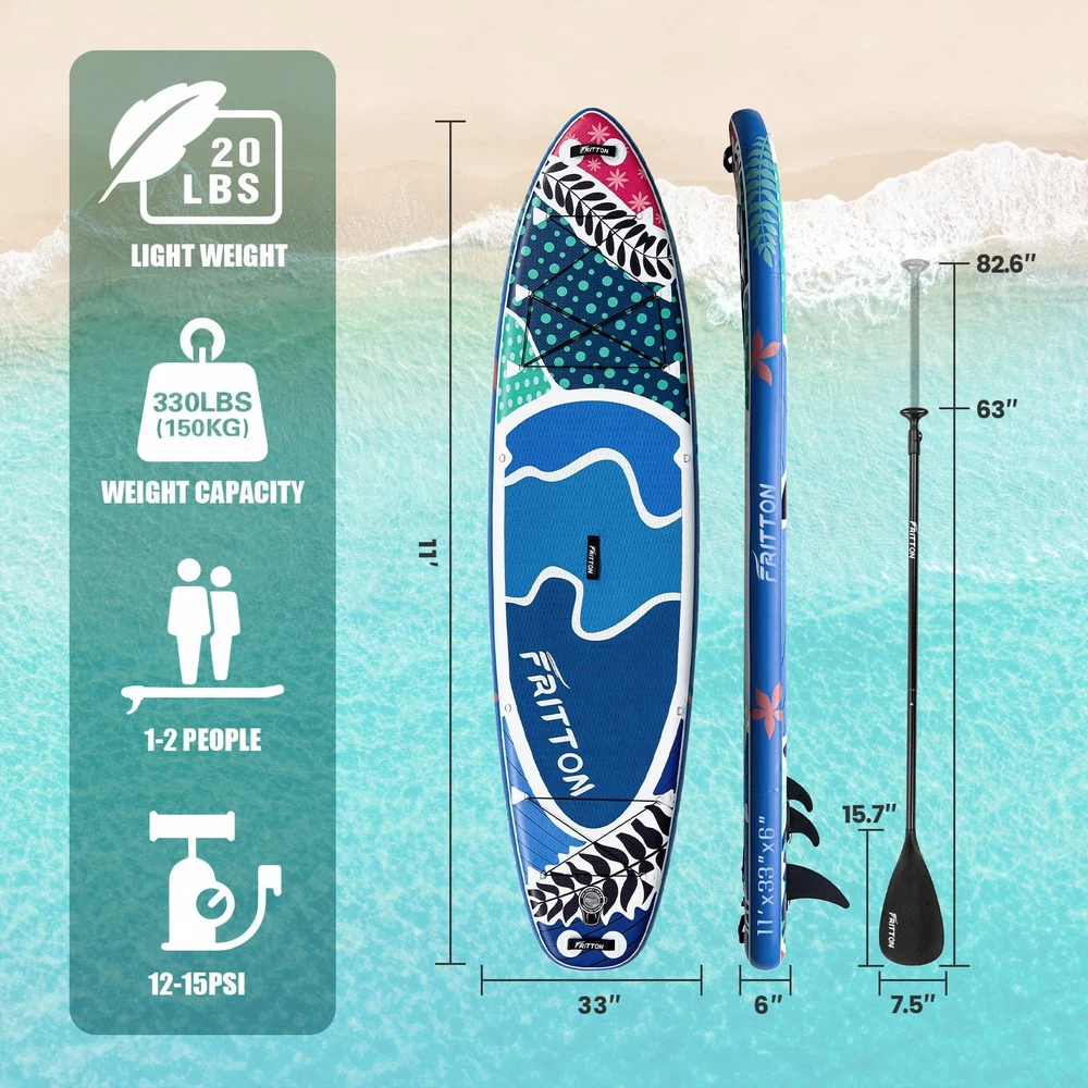 paddle board sup inflatable paddle board paddle boards for adults paddleboard stand up paddle board inflatable stand up paddle board inflatable paddle boards for adults paddle boards blow up paddle board stand-up paddleboards sup board blow up paddle boards for adults inflatable stand up paddle board inflatable sup paddle board inflatable paddleboard inflatable fishing paddle board inflatable paddle boards inflatable paddleboard standup paddle board inflatable sup paddle board standup paddle board paddleboards inflatable paddle board with pump inflatable sup board sup inflatable paddle board [Premium PVC & Anti-slip EVA material] paddle boards for adults are made of premium ultra-light PVC material, which has excellent wear resistance and long life. With advanced needle-drop core tech and high-pressure valves, you can inflate your paddle board to the hardness of a rock! In addition, the inflatable paddle board surface is equipped with a widened 5mm thick EVA deck, which allows you to stay comfortable on the paddle board and has a non-slip effect. [Extra Wide All Round Board & 350lb Weight Capacity] The 33'' extra wide paddle boat has excellent stability and is easy for beginners to stand up and balance on the SUP board. The sup paddle board can hold up to 350 lbs and can support 1-2 people. It is a good choice to bring family, friends or pets to use together. The high-performance & high-load-bearing paddle board is the perfect stand up paddle board for all skill levels. Very suitable for use in oceans, lakes and rivers~ [15 D Rings & 3 Handles] The 10 D-rings on the front and rear decks of the paddle boards are equipped with elastic ropes, providing ample storage space for you. The 4 middle D-rings can be fitted with a kayak seat to increase the comfort of rowing. The D ring near the valve is used to tie the safety leash to ensure your safety. 3 handles are located at the top, center, and tail of the paddle board. It is convenient for you to transport the SUP, or lift and drag the board from the water. [3 Fins & Superior Maneuverability] 1 central fin & 2 small fins at the bottom of the tail of the paddle board to help you improve the traction and stability of the inflatable paddleboard. Whether you're on calm water or dealing with waves, it makes controlling the direction of your inflatable paddle boards for adults much easier to glide effortlessly. The fins are easy to install and stable. The detachable design also makes it easier to store the fins and paddleboard inflatable. [Premium SUP Accessories] 11'*33''*6'' is the size of the inflatable stand up paddle board, including all the accessories you need. The packaging includes: 1 x stand-up paddleboards, 1 x adjustable SUP paddle, 3 x detachable fins, 1 x hand pump, 1 x backpack, 1 x safety leash, 1 x waterproof phone bag, 1 x repair kit. All accessories can be stored in the backpack.