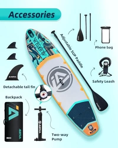 Return Policy Fast Delivery Trusted seller Stand Up Paddle Board Inflatable Stable Sup Board with Fishing Paddleboards Accessories for Adults Youth Wide Non-Slip Deck Paddleboard Product Description 1. Premium Materials and Durability: unmatched durability with the Ailiefsun Inflatable Stand Up Paddle Board (SUP).This SUP board features an anti-UV coating and an EVA non-slip deck pad for maximum traction and comfort.The 2-fusion layer and air-tight coating ensure long-lasting performance, while the X-type high-density wire drawing and dual rail sideband provide superior strength and wear resistance. Wide Design and High Weight Capacity:Enjoy a stable and comfortable ride with the Inflatable SUP Board.Measuring 33 inches wide and 10.5 feet long, this sup paddle board has a weight capacity of 390 lbs, making it ideal for 1-2 riders.The extra-wide design ensures excellent balance and stability, perfect for families, friends, or even your pets. Whether you're paddling alone or with a companion, this inflatable paddle board offers a smooth and enjoyable experience. 3.Portability and Quick Inflation: Travel with ease and convenience using the Inflatable SUP Board.The double-action fast pump inflates the board in just 5-8 minutes and deflates it in 2-3 minutes, making it quick and efficient to set up and pack away.The lightweight design and compact size when deflated allow for easy storage and transportation, whether you're heading to the beach, lake, or river.This inflatable paddle board is perfect for camping trips, boating, and other outdoor adventures. 4. Comprehensive Accessory Kit: Get everything you need for a fantastic paddling experience with the Inflatable SUP Board.The complete accessory kit includes a height-adjustable SUP paddle, waterproof phone bag, safety leash, travel backpack, 3 detachable fins, bidirectional pump with a pressure gauge.These paddle board accessories ensure you have all the necessary gear for a safe and enjoyable day on the water, whether you're fishing, practicing yoga, or simply exploring. 5. Versatile Design and Features: The three detachable fins enhance maneuverability and speed, while the conical-shaped nose allows for smooth and agile turns.The 13 D-rings and storage straps provide multiple attachment points for securing items like coolers, fishing gear, or additional equipment.The 2 secure handles make it easy to carry and handle the board, even when wet. Whether you're using it as a fishing paddle board or for general recreation, this is designed to meet all your needs. Shipping Returns Payment Shipping Shipping is FREE to all addresses other than APO/PO boxes in the lower 48 states. All our stock ships from US-based warehouses. Shipped via USPS or UPS (depending on location and package weight) Unless stated otherwise, all orders will ship within 24-72 hours of your payment being processed. Check our feedback to see the great reviews of FAST shipping we offer. Returns Seller does not accept returns Payment We currently accept payment via eBay managed payments only. Once payment is cleared, we will dispatch your shipment within 1-3 business days. Please refer to the "Shipping" tab for more information regarding shipping speed to your destination.