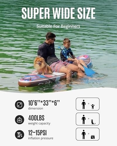 This inflatable SUP is a game-changer! The extra-wide non-slip deck and patented square balance fin make it incredibly stable, perfect for beginners and pros alike. The included seat lets you switch between paddleboarding and kayaking effortlessly. The durable accessories and adjustable paddle add great value. Fast shipping and solid return policy make this a worry-free purchase. So much fun on the water—highly recommend!