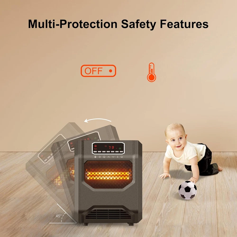 Infrared Space Heater 3 Mode 1500W Electric Heater with 6 Quartz Infrared Elemen