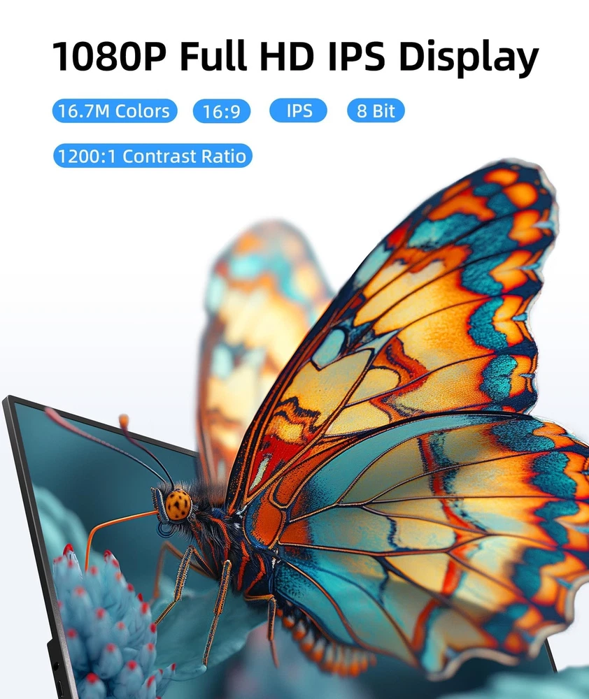 【Ultra-Thin and Portable, Easy to Carry】The Ingnok Portable Monitor is only 0.5 times the thickness of an Phone and weighs just 1.46lb. It’s incredibly easy to carry whether you’re traveling or working at your desk, providing a hassle-free experience. 【FHD IPS Monitor for Visual Enjoyment】Featuring a 1920x1080 resolution, Portable Monitor For Laptop delivers clear and vivid details with true-to-life color reproduction. Enjoy an immersive visual experience that makes 【 Flexible Viewing Angles】Equipped with an adjustable stand, Ingnok Portable Screen allows you to freely adjust the viewing angle to your preference. Enjoy the most comfortable viewing experience, whether you’re working, 【Quick & Seamless Connection】Utilizing the latest USB-C technology, Ingnok Travel Monitor provides data transfer and power supply through a single cable. Compatible with various devices, including laptops, Mac,PC,and gaming consoles. 【Boost Productivity, Ideal for Flexible Work】The Ingnok Laptop Screen Extender helps you multitask efficiently, boosting your productivity. Whether where you are , is the companion for a flexible and efficient work setup.
