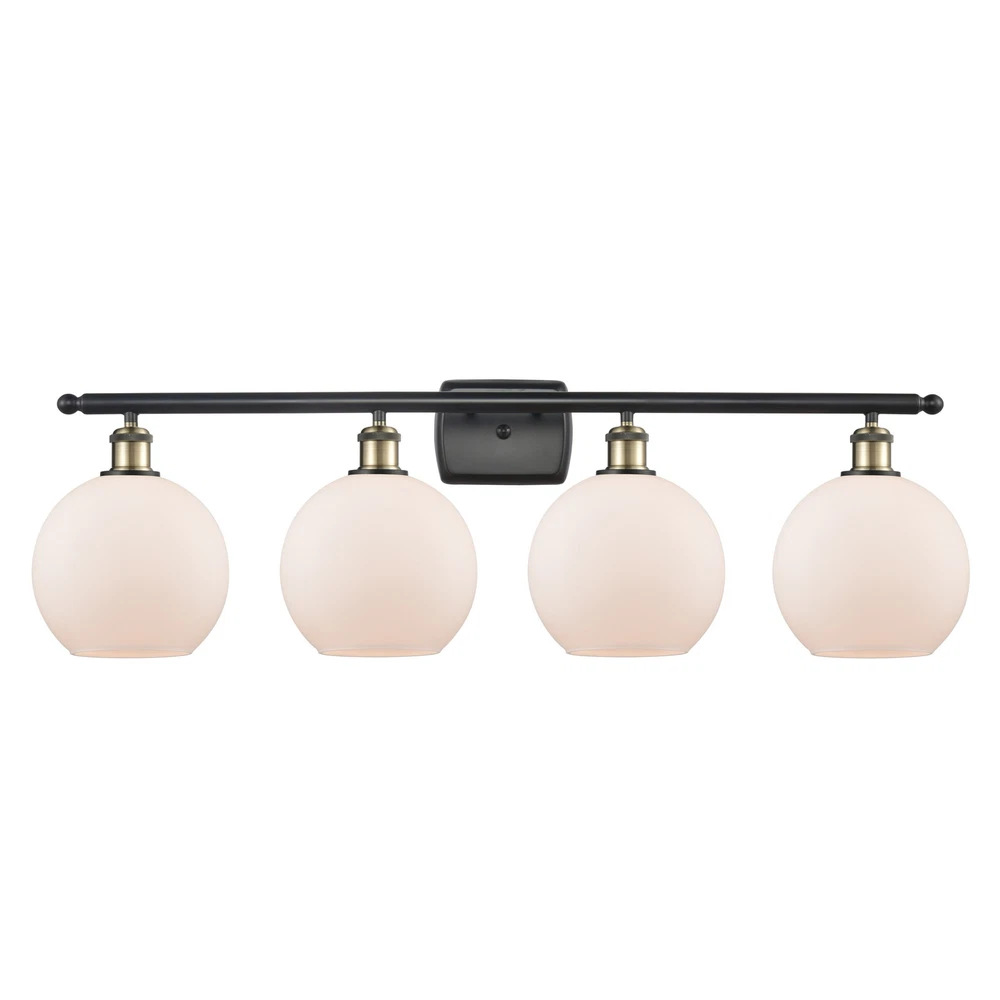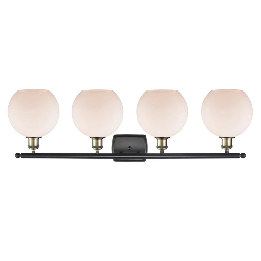 A truly dynamic fixture, the Ballston fits seamlessly amidst most décor styles. Its sleek design and vast offering of finishes and shade options makes the Ballston an easy choice for all homes.Fixture can be hung with bulbs facing up or down4.5" x 6" 2mm heavy cast backplateRated for 100 watt maximum per socketUL/CUL Damp RatedCompatible with Incandescent, LED, Fluorescent and Halogen bulbsFinish Options: Antique Brass, Antique Copper, Black Antique Brass, Brushed Brass, Brushed Satin Nickel, Matte Black, Oil Rubbed Bronze, Polished Chrome, Polished Nickel, Satin Gold, White and Polished ChromeShade Options: Clear Clear, Matte White, or SeedyInstall Orientation: HorizontalBulb Shape: ST64Socket Type: Medium BaseLamp Type Details: BB-60-ALight Bulb Not IncludedFixture Dimmable: Yes Free Shipping Over $49.99* Details Innovations Lighting Ballston Athens - 4 Light 36" Bath Vanity Light - 8" Shade Product Description: A truly dynamic fixture, the Ballston fits seamlessly amidst most décor styles. Its sleek design and vast offering of finishes and shade options makes the Ballston an easy choice for all homes. Fixture can be hung with bulbs facing up or down 4.5" x 6" 2mm heavy cast backplate Rated for 100 watt maximum per socket UL/CUL Damp Rated Compatible with Incandescent, LED, Fluorescent and Halogen bulbs Finish OptionsAntique Brass, Antique Copper, Black Antique Brass, Brushed Brass, Brushed Satin Nickel, Matte Black, Oil Rubbed Bronze, Polished Chrome, Polished Nickel, Satin Gold, White and Polished Chrome Shade OptionsClear Clear, Matte White, or Seedy Install OrientationHorizontal Bulb ShapeST64 Socket TypeMedium Base Lamp Type DetailsBB-60-A Light Bulb Not Included Fixture DimmableYes