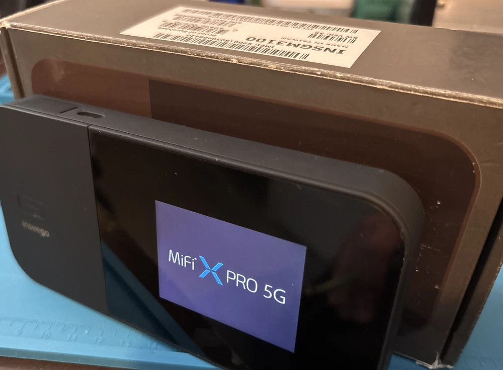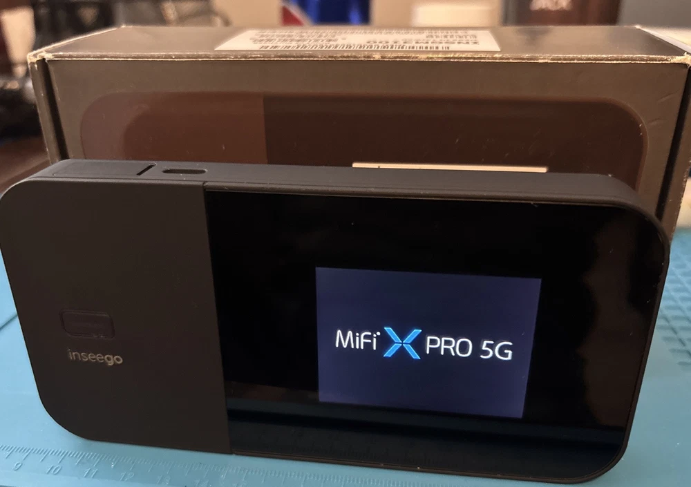 The Inseego MiFi X Pro 5G WiFi Mobile Hotspot is a high-speed modem supporting 5G UW technology, offering a maximum LAN data rate of 1000 Mbps and a maximum wireless data rate of 1200 Mbps. It features Ethernet and USB-C ports, dual-band connectivity, and VPN capabilities. This unlocked device is compatible with Verizon and other networks, providing fast and secure wireless internet access. The sleek black unit is compact and portable, making it convenient for use at home or on the go. Used in great condition. Box battery and all. Fast shipping.