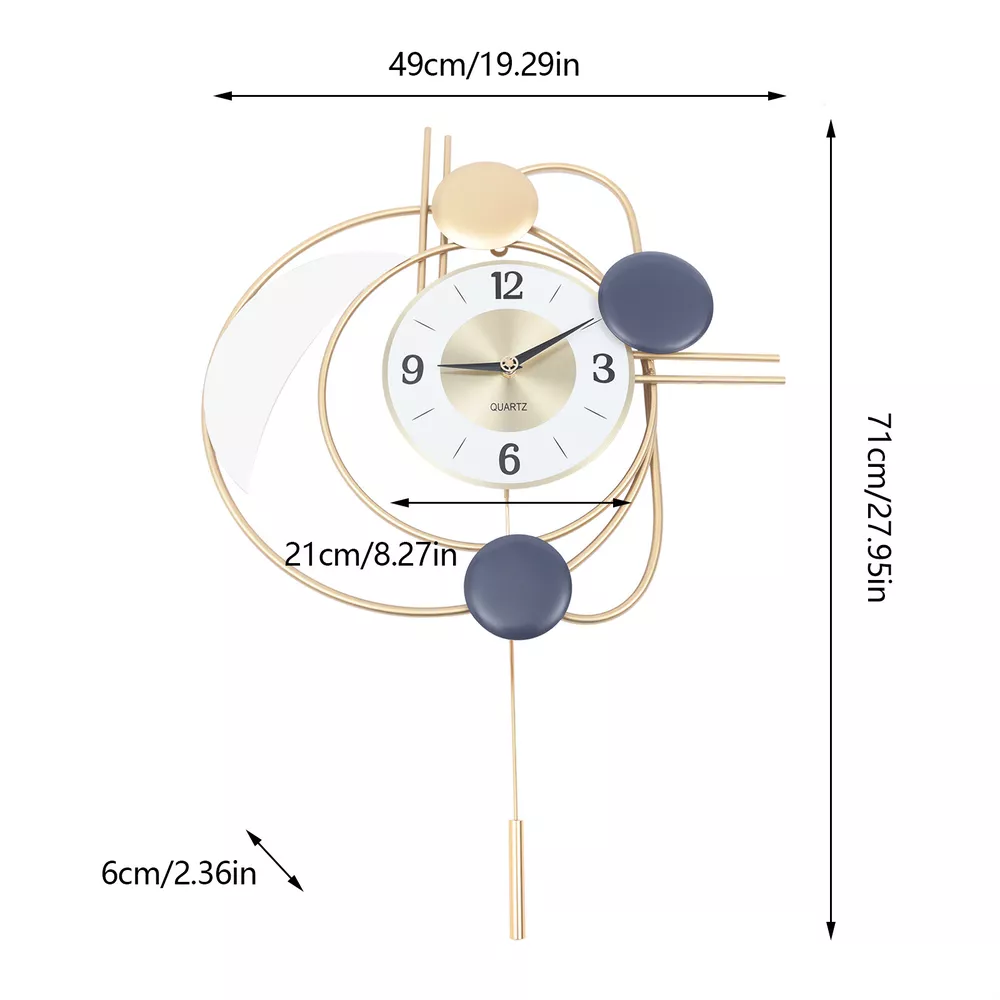 Have a nice day~ 1.Description 3D Modern Wall Clock Silent Swing Wall Watch Clock Golden Creative Living room Decor 2.What's Included? 1x Wall Clock 3.Features&Highlights Premium Material : Handmade Metal Creative Wall Clock Decor, Made Of Durable Environmentally Friendly Metal , Durable And Easy To Clean,Anti-Dust . Silent Movement : Silent ,Sweep ,Quartz Movement , No Ticking Sound ,Creating a Quiet Atmosphere.Enjoy a Quiet Environment While Sleeping, Studying And Working. Clock Hand Runs Calm And Smoothly,Thus Ensuring Better Time Accuracy. This Silent Movement Requires 1 AA Battery ( Not Included ) . Novel Styles : Precise Structure, Precise Needle Movement And Automatic Swing.Tips: When You Get Our Fancy Wall Clock And Put Batteries In The Pendulum Not Work, You Need To Be Unsnapped The Pendulum Hook At Back And Give a Little Push Then It Will Swing Fine. Application Place : Living Room, Bedroom, Study, Office, Kitchen, Bathroom, Public Place, Dining Room, Porch, Business Place 4.Weights&Dimensions Size: 71x49x6cm/27.95x19.29x2.36in Product Weight: About 1.3kg 5.Specifications Material: Metal Colour: Golden Installation Method: Wall-Mounted Dial Diameter: 21cm/8.27inch Payment Delivery details Terms of sales About us Contact us Payment We accept ebay payment 。 Fees such as import duties, taxes are not included in the item price or shipping costs. These charges are the buyer's responsibility. Delivery details Shipping: 2-9 working days to: USA Terms of sales We maintain high standards of excellence and strive for hundred percent customer satisfaction. Feedback is very important to us. We hope that you contact us immediately before you give neutral or negative feedback, so that we can address your concerns. It is impossible to address issues if we do not know about them! About us Your satis faction is our ultimate goal. We work hard to earn your trust and future business. Our certified technicians have tested each item before shipping. The unit comes with 1 year limited warranty on all manufacturing defects. a) If you receive a defective item, you may return it or ask for a discount. Please contact us within 14 days after you receive the package. b) What you returned must be intact and in its original packaging as re? u. Customer is responsible for shipping costs of the returned item. c) We will cover the cost of shipping back t with the shipping rate indicated in the registration page. We will send you a new unit or refund the full payment you paid. Thank you. Contact us Business Hour Business Hour: Monday To Friday: 8:30 AM to 5:00 PM (Beijing China time) Due to time zones, our reply to your questions may not be immediately. But within above working time, we will reply your email within 24 hours. If it's non-workdays, please kindly be patient and wait till Monday. Please contact us with ebay message. Please feel free to contact us if you have any questions. Monday To Friday: 8:30 AM to 5:00 PM (Beijing China time) Due to time zones, our reply to your questions may not be immediately. But within above working time, we will reply your email within 24 hours. If it's non-workdays, please kindly be patient and wait till Monday. Please contact us with ebay message. Please feel free to contact us if you have any questions. StartPrice 63.2016 Brand Unbranded Type Sticker/3D DIY Clock Features 12-Hour Display Theme Art Style Modern Power Source Battery Powered Movement Quartz (Battery Powered) Display Type Analog & Digital Material Metal Color Gold Frame Material Metal Franchise N/A Room Bathroom, Bedroom, Dining Room, Hallway, Home Office/Study, Living Room Finish Gold Chime Sequence N/A Era 21st Century (2000-Now) MPN Does not apply Model N/A Manufacturer Warranty 1 Year Item Length 49cm/19.29in Item Width 6cm/2.36in Item Height 71cm/27.95in Item Weight About 1.3kg Character Family N/A On Feb 7, 2025 at 02:26:10 PST, seller added the following information:
