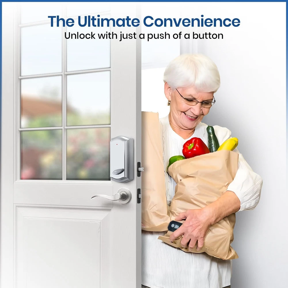 EASY INSTALLATION OVER EXISTING LOCK: Keep your existing deadbolt and upgrade to a smart lock for your EXISTING deadbolt. NO TOOLS required! Instalock installs on the inside of your door, offering a hassle-free solution for modern homes. Control your door remotely from up to 80 feet without having to change your existing deadbolt. Instalock is the perfect apartment friendly smart lock. Our wireless deadbolt smart lock includes two pre-programmed key fobs while your original key remains fully functional. SEAMLESS SMART LOCK UPGRADE: Transforms your existing deadbolt into a smart lock effortlessly. Our smart lock for your existing deadbolt is great for those who value simplicity and efficiency, ensuring you get a seamless upgrade without professional help. The smart lock home-kit feature makes it an ideal match for apartment friendly smart lock needs, allowing for a quick and easy setup for any kind of home. ENCRYPTED TECHNOLOGY FOR MAXIMUM SECURITY: Featuring advanced rolling code encryption, Instalock is the simple solution for your smart lock needs while offering robust protection. Our smart lock installs over your existing deadbolt keeping unauthorized users out while you control access with the remote lock function, or you can still use your original key! Whether you call it a smart bolt lock, smart lock deadbolt, or wireless door lock, Instalock delivers unparalleled security with ease of use for modern households. LONG-LASTING BATTERY FOR RELIABLE PERFORMANCE: Includes four replaceable AA batteries. Instalock’s wireless deadbolt minimizes power concerns. Enjoy uninterrupted functionality from this wireless lock, ensuring your home-kit smart lock remains operational. Ideal for those seeking a remote lock for your door that combines durability and innovation. The deadlock smart lock design enhances security without altering your existing setup. DUAL ACCESS FOR MAXIMUM FLEXIBILITY: Unlock your door with a remote key fob or retain the option of using your existing key with this smart lock deadbolt. Ideal for modern living. Instalock is a remote door lock that adapts to your needs. With its home-kit deadbolt capability Instalock serves as a remote door lock for your home entry solution that’s great for families or tech-savvy users. This versatile wireless deadbolt smart lock is an essential upgrade for every household.