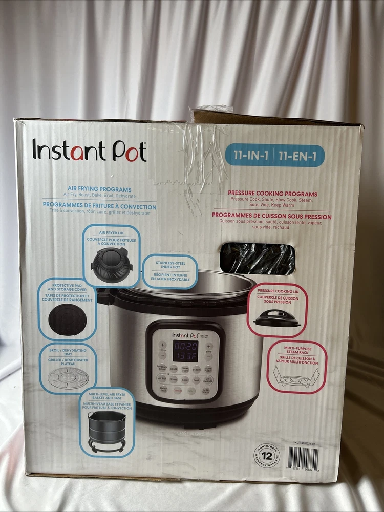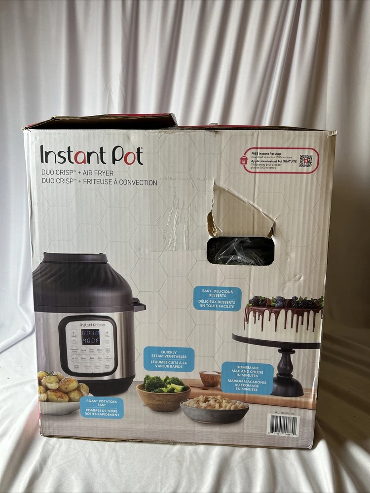 This 8 Quart Duo Crisp + Air Fryer by Instant Pot is the perfect addition to your kitchen. With the ability to pressure cook, air fry, bake, roast, broil, and dehydrate, this versatile machine can handle all your cooking needs. Its large capacity allows you to cook for a group with ease, and its countertop design makes it a convenient appliance to have in your home. The Instant Pot 8 Quart Duo Crisp + Air Fryer is brand new and ready to be used. Its model number, 140-0021-01, ensures you are getting the latest version of this popular appliance. With one fry pot and a variety of cooking options, you can create delicious meals without worrying about the condition of the item. Get yours today and start cooking! Item was not tested. Item has no signs of usage SKU-w11 DATE-6/24/24 LISTED BY-warehouse CONDITION-new open box SIZE/SHADE