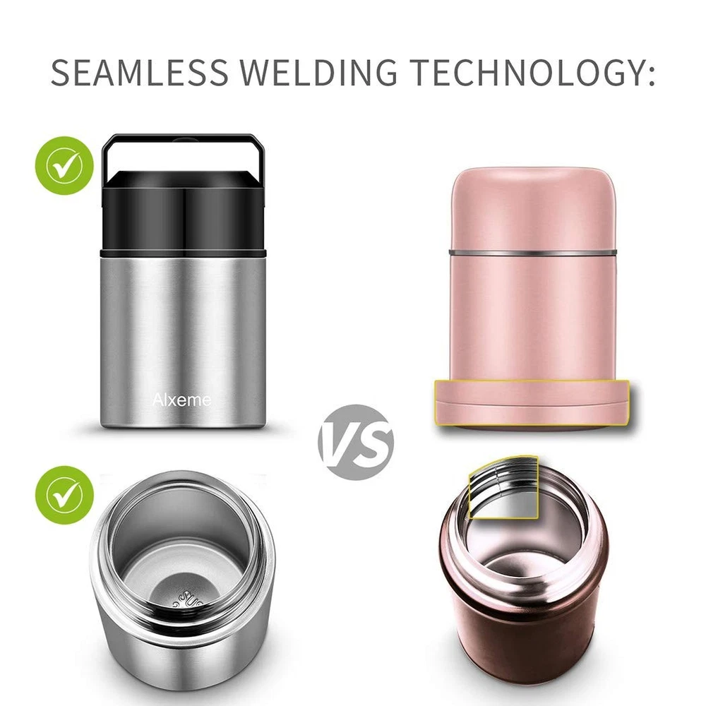 Vacuum Insulated Food Jar for School/ Office/Travel/ Outdoor Activities Why choose our insulated food jar : ✔Every food jar supplied by uses seamless welding technology to effectively improve the insulation effect. ✔The Double wall 304 18/8 stainless steel vacuum insulated technology can effectively eliminate the convection process. ✔Double lids design for enhance insulation & leakproof. Outer lids can be used as a bowl, perfect for kids’ lunch. ✔Big capacity for addressing hunger. The 27 oz big size also enough for 2 small appetite people. ✔With convenient folding spoon & firmly handle. That would be easy to carry & use. ✔The big mouth of the food jar makes you easier to clean, you can easily reach the bottom of the food container. How to use the food jar? 1. For maximum thermal efficiency, you are suggested to preheat(Using hot water)/pre-chill(Using cold water) the food jar before use for about 3 minutes and then empty water. And then you could fill contents to your container. 2. Press the air button before opening the food jar, and be careful the exhausted hot steam. Product Specifications: Size: 4.4inch X 4.4inch X 6.5inch Capacity: 27oz Weight: 0.55kg/1.2lb Material: PP、 food grade silicone、food grade 304 stainless steel All of the parts are food grade material, BPA Free, no PVC. please feel relieved about usage. Package Contents: Insulation Body X 1 Folding Spoon X 1 Inner Lid X 1 Outer Lid X 1 User Manual X 1 Vacuum Insulated & Seamless Welding Technology: Double wall vacuum insulation technology and seamless welding technology for maximum temperature retention keep food hot for more than 6 hours or keep food cold for 24 hours. Portable & Convenient Food Jar: The outer lid with a telescopic handle is very convenient for people to take it out to travel, picnic, work or school. Moreover, the outer lid is made of food grade pp material, it can also place food. 3.4 INCH Wide Mouth & Sturdy Folding Spoon: The wide mouth design with spoon of the food jar make you easy to fill and eat and quick cleaning. Meanwhile, it has 27 oz big capacity, no worry for hungry. Leak Proof Design: We only choose high quality stainless steel inner lid and silicone sealing ring, so that the food container would improve insulation effect and prevent spilling accidents. The stainless steel inner lid bring better insulation. High Quality : The Insulated food jar is made of premium quality 304 stainless steel (BPA Free, Non-Toxic, No PVC).This food jar has full size folding stainless steel spoon that you can use on any occasion. We promise service, please do not hesitate to contact us for help.