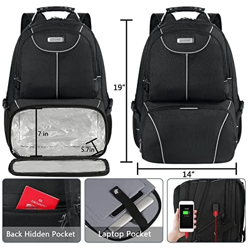 Return Policy Fast Delivery Trusted seller Lunch Bag Backpack, Insulated Cooler Lunch Box Backpack, Extra Large Travel Laptop Backpack TSA Friendly RFID Computer College bag with USB Port for Women Men Fits 17.3 Inch Laptop Product Description INSULATED LEAKPROOF COOLER FUNTION:Our Lunch Backpack not only keeps warm but also keeps cold drinks for about 2-4 hours. The quality insulation layer of lunch box compartment keeps fresh and warm, which makes it easy to clean. Travel backpack cooler bag is suitable for office,picnic,beach,trip,travel,outdoor&indoor. Dimension of the cooler compartment: 11.8 x 7.8 x 7.8 inch Large Capacity USB Charging Port: 2 Large compartments give excellent protection for 2 laptop computers and tablet.Largest main compartment hold for 2-3 days travel clothing.Many hidden pockets can accommodate lots of travel accessories,notebook, personal toiletries,side Zipper pocket for Easy access essentials, external USB port with set-in charging cable offer convenient charging your cellphone and other electronic devices.A hole for headphone outside gives easy access to Earphone usage TSA approved RFID ANTI-THEFT: Unfolds the extra large backpack 90-180 degree making you quickly through the airport security and keep items tidy,Designed for airplane traveling. The big backpack perfect for indoor/outdoor activities,Served as college backpack.RFID Pocket with RFID-radio frequency identification help secure personal data encoded on you credit cards,IDs and passports.The anti-theft pocket on the back of backpack,easy to put your phone, purse and passport Back Luggage Strap Chest Strap: Back U-shaped ventilation design help for the air convection. Adjustable shoulder straps with padding help relieve the stress from your shoulder. A luggage strap allows backpack fit on luggage/suitcase, slide over the luggage upright handle tube for easier carrying;The Adjustable chest strap bring the shoulder straps in tighter to the chest. Also, the laptop backpack with a sturdy rugged handle with steel cable on the top for carrying MATERIAL SOLID: Heavy duty XL backpack made from quality polyester nylon fabric, with heavy-duty two-way waterproof zippers across the backpack are convenient to operate on whichever side you prefer, for a secure and long-lasting usage everyday/weekend. A rugged handle with steel cable on the top for easy carrying, Side compression straps keep the versatile stylish backpack at whatever size you requires Shipping Returns Payment Shipping Shipping is FREE to all addresses other than APO/PO boxes in the lower 48 states. All our stock ships from US-based warehouses. Shipped via USPS or UPS (depending on location and package weight) Unless stated otherwise, all orders will ship within 24-72 hours of your payment being processed. Check our feedback to see the great reviews of FAST shipping we offer. Returns Seller does not accept returns Payment We currently accept payment via eBay managed payments only. Once payment is cleared, we will dispatch your shipment within 1-3 business days. Please refer to the "Shipping" tab for more information regarding shipping speed to your destination.