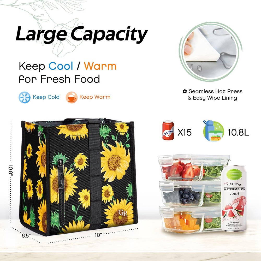 lunch bag Spacious & Lightweight: Measuring 10" x 6.5" x 10.8" (LWH) and weighing only 0.9 lb, this lunch bag offers ample room for lunch box, snacks, drinks, yogurt, fruit, and bottles. It also features two large zip pockets for small items Leak-proof & Insulated: The water-repellent nylon exterior is durable and easy to clean. Inside, a 3mm insulation layer combined with a PEVA film provides flexible insulation that keeps food hot, cold, or fresh for hours, while allowing for easy folding Portable & Versatile: With a detachable adjustable shoulder strap, you can carry it by hand, on your shoulder, crossbody, as a backpack, or attach it to your work bag. Transformative and stylish, it folds into a compact size when not in use Various Occasions: This reusable lunch bag fits work, travel, camping, and more occasions. Lightweight lunch bag appeals to various demographics Best Gift Choice: Original Design Native Lunch Bag makes a great gift for women, mom, sisters, friends and coworkers for Birthdays, Mother's Day, Teacher's Day, Anniversary, Valentine's Day, Wedding or thank you gift
