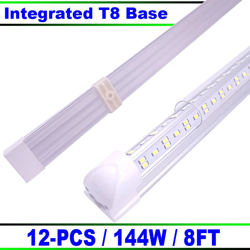 FAST DELIVERY - Ship from New Jersey or Los Angeles Warehouse via FedEx , 3-7 Days Delivered Your Door . SCIENTIFIC DESIGN - 8Ft LED Shop Lights Fixture is Made of 6500K Cold White SMD2835 LED Chip ,Plastic Clear Cover , Aluminum Bracket Housing ,and AC85-277V Constant Current Driver . It can work in -68F to 120F Temperature Conditions EASY INSTALLATION - The Integrated Tube Fixture Can be Install on Wall or Ceiling ,Easily Replace Traditional Fluorescent Tube Bulb . Plug and Play , Free Accessories (Power Cords, Connector , Extension Cords , Clip and Screw ) Come with Tube Lights Together WIDE APPLICATION - Linkable 8Ft Bulbs Widely Used in Garage Ceiling , Barbershop , Schools, Hospitals Basement , Factory Warehouses , Supermarkets Cooler Door , Offices, Shops,Hotels, etc Integrated LED Tube 8Ft 144W LED Bar Lamp LED Shop Light Fixture 6500K 12/Pack FAST DELIVERY - Ship from New Jersey or Los Angeles Warehouse via FedEx , 3-7 Days Delivered Your Door . SCIENTIFIC DESIGN - 8Ft LED Shop Lights Fixture is Made of 6500K Cold White SMD2835 LED Chip ,Plastic Clear Cover , Aluminum Bracket Housing ,and AC85-277V Constant Current Driver . It can work in -68F to 120F Temperature Conditions EASY INSTALLATION - The Integrated Tube Fixture Can be Install on Wall or Ceiling ,Easily Replace Traditional Fluorescent Tube Bulb . Plug and Play , Free Accessories (Power Cords, Connector , Extension Cords , Clip and Screw ) Come with Tube Lights Together WIDE APPLICATION - Linkable 8Ft Bulbs Widely Used in Garage Ceiling , Barbershop , Schools, Hospitals Basement , Factory Warehouses , Supermarkets Cooler Door , Offices, Shops,Hotels, etc