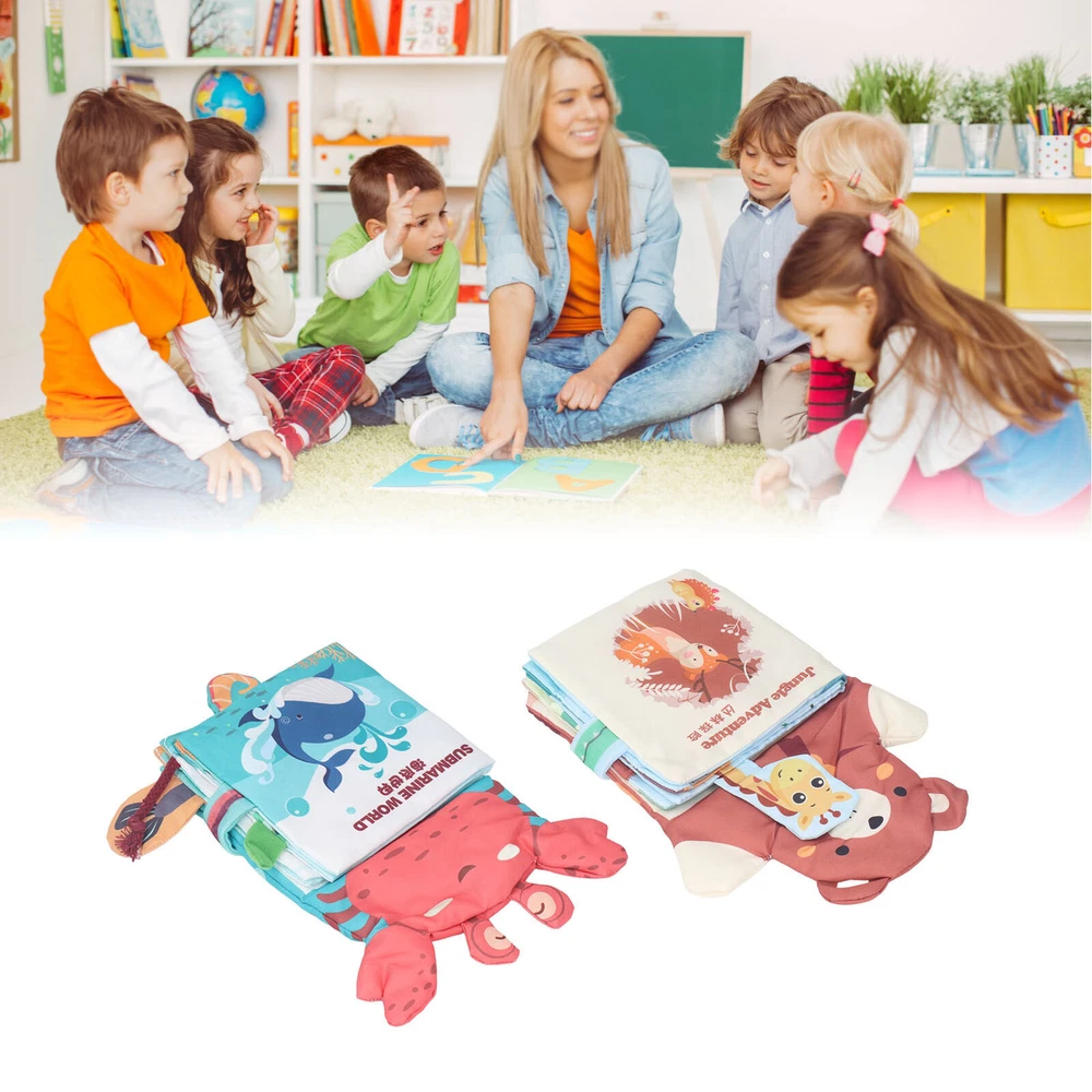 Feature: 1. Innovative Design: Baby cloth books stimulates your baby's exploration and imagination through three dimensional animal hand puppets. 2. Auditory Training: The soft cloth baby book has a sound paper design, which brings interesting sound sensations to the baby and improves concentration. 3. Early Education: Baby cloth books have a wealth of patterns and text to help babies learn about colors and animals, and start early education. 4. Safe Material: Baby books toys are made of environmentally friendly fabrics, which are safe and harmless, giving babies a more secure play experience. 5. and Long Lasting: Infant cloth books are crafted with fine craftsmanship to resist tearing and are the right size for your baby to play. Specification: Item Type: Baby Cloth Books Material: Fabric Package List: 1 x Baby Cloth Books