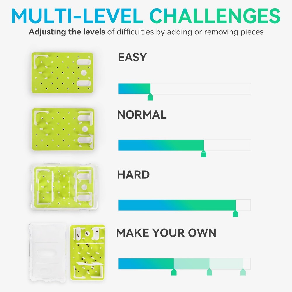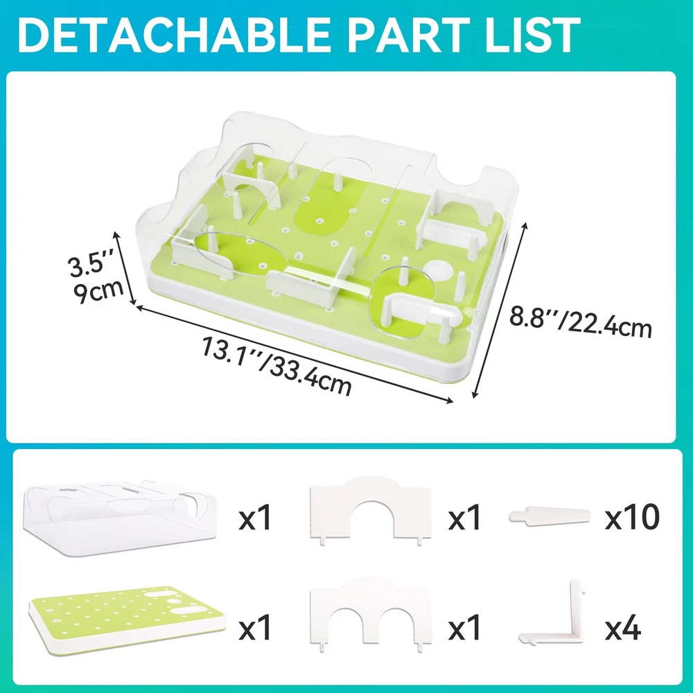 Interactive Cat Puzzle Feeder, Cat Food Treat Dispenser Cat Toy Mental Stimulation Maze Toys Slow Feeder Cat Enrichment Toys for Indoor Cats Multiple Difficulty Levels for Smart Play: This cat puzzle toy features adjustable difficulty settings, perfect for beginners and advanced cats alike. As your cat progresses, new modules challenge their mind, keeping playtime fresh and engaging. It’s a cognitive workout that grows with your cat. Interactive Feeder for Mental Stimulation: Designed to balance cognitive challenge with fun, this puzzle feeder stimulates your cat’s mind through instinct-driven tasks. Multi-module design keeps indoor cats mentally active, helping reduce boredom and encouraging daily enrichment and focus. Slow Feeder Maze for Healthier Eating: Acting as a treat puzzle and slow feeder, this toy encourages cats to eat more slowly by solving food-based challenges. It mimics hunting behavior, supports digestion, and helps prevent overeating—ideal for fast eaters or cats on weight control diets. Detachable & Easy to Clean Design: Maintaining cleanliness is a breeze with this cat toy, as it’s constructed from food-safe materials that prioritize your pet’s health. The toy is designed with detachable parts, making it simple to disassemble and wash after each use. Non-Slip Base for Stable Playtime: Equipped with non-slip rubber feet, this interactive cat puzzle stays firmly in place during play. Whether pawing, batting, or nudging for treats, your cat can focus on the challenge without frustration or shifting, ensuring safe and stable fun.