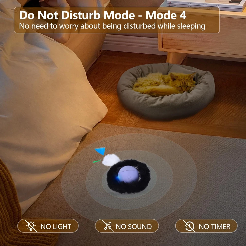 cat toy ball 【2-in-1 Upgraded Maze Pouch Smart Ball Toy】: This toy simulates the illusion of a mouse scurrying under a mat. The upgraded pouch design features seven peek-a-boo mouse holes, let your cat to sneak a peek and paw at the "mouse holes" . Powered by a high-quality smart ball, it ensures strong driving force and sensitivity for engaging playtime. 【Why Smart Interactive Ball?】: The automatic cat toy ball features an exclusive upgraded motor and customized chips, easily roll on various floors. With functions like random movement and automatic obstacle avoidance, it lets your cat chase, jump, and play, fueling their natural hunting instincts. 【4 Engaging Sounds Attraction】: The interactive cat toy features four sound effects—mouse squeaks, bird calls, frog croaks, and food dropping—designed to stimulate your cat’s senses from rich and interesting sounds, satisfying their curiosity and keeping them intrigued 【Touch Activated & Timed Activation】 : The cat toy is in-built with a specific customized touch sensor for FUR PAW. The sensitivity is much higher than others. Its timer function (activates for 1min every 3h; if your cats continues playing, the ball will keep rolling), ensuring that all your fur babies in multi-pet households can enjoy endless fun. 【Simply Clap to Find Lost Ball】: Worried about losing the cat toy ball? ’s smart ball is equipped with a highly sensitive sound-activated chip. Simply clap within about 3.3Ft range, and it will start moving again. Plus, it has an automatic obstacle avoidance function to prevent it from getting stuck under the sofa or bed. 【Harmonious Living for You and Your Pets】: The thoughtful "Do Not Disturb" mode ensures the ball won't activate automatically at night, allowing both you and your pet to enjoy a peaceful sleep. The ball use silicone and plush materials, the ball operates quietly, reducing noise effecitively 【Efficient & Fast Customer Service】: Welcome to contact anytime any questions. We will respond within 16h and put your smile back on your face :)