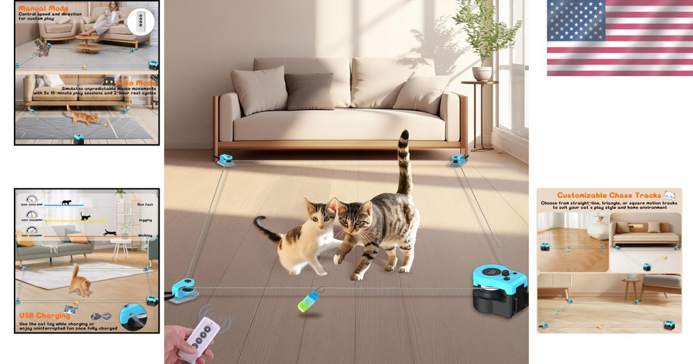 Interactive Cat Toy with Remote Control - 3 Speeds ‹ › ‹ › ‹ › ‹ › ‹ › ‹ › ‹ › ‹ › Interactive Cat Toy with Remote Control - 3 Speeds Unleash Your Cat's Inner Hunter Ignite your feline friend's curiosity with our Interactive Cat Toy, a remarkable treadmill designed to mimic natural hunting instincts! With a self-rotating wheel boasting three adjustable speeds, this toy invites your cat to engage in play, burn energy, and minimize boredom. Safety and Durability at Its Best Whisper-quiet motor ensures a peaceful environment for both you and your cat. Non-slip running belt guarantees a secure grip for safe play. Rounded edges and chew-resistant materials protect paws and teeth, making it suitable for kittens and adult cats alike. Promote Healthy Movement Transform fitness into an entertaining activity! Our adjustable cat treadmill encourages healthy movement with customizable speeds, supporting indoor cats in remaining active, fit, and mentally stimulated—free from any forced workouts. Fun for Multi-Cat Households Versatile design allows you to attach feathers or dangling toys to the treadmill’s hook for endless fun. Perfect for multi-pet families—let your furry friends sprint, chase, and play together! Compact and sturdy, this treadmill integrates perfectly into any room, ideal for apartments or larger homes. The Ideal Choice for Cat Lovers With innovation stemming from patented technology, our Interactive Cat Toy is more than just a plaything—it's a vital addition to your pet's lifestyle that harmoniously combines fun and fitness. Don’t let your cat miss out on the joy of interactive play! Invest in their health and happiness today! Shipping Free & Fast Shipping - We offer free shipping to most of the USA with a normal delivery time of 3-10 business days. However, due to various situations, additional delivery time (up to 3 weeks) may be required for some items. Alternative Carriers - We may use alternative carriers (e.g. USPS, FedEx, UPS, etc.) to ensure your package arrives safely and on time. Due to the use of multiple carriers, we are unable to provide a tracking number automatically. Handling Time - Orders are processed and shipped within 1-5 business days of receiving cleared payment. Shipping Restrictions - Shipping to Alaska, Hawaii, Puerto Rico, Guam, and other US territories may incur shipping charges or delivery restrictions. Please contact us before ordering, or your order can be refunded/cancelled. State Restrictions - There may be restrictions based on your state of purchase. For example, certain items may not be shipped to California due to state regulations. Contact for Tracking Updates - If you require tracking updates or have any concerns about the delivery of your order, please feel free to contact us, and we will be happy to assist you. Return 30-Day Hassle-Free Returns - We want you to be completely satisfied with your purchase. If you are not, you can return the item within 30 days of receiving it for a full refund or exchange. Easy Return Process - To start a return, simply contact us and we will provide you with a prepaid return shipping label and detailed instructions. Restocking Fee - There are no restocking fees for returns. However, the buyer is responsible for return shipping costs if the return is not due to a seller's error. Refund Processing Time - Refunds will be processed within 5 business days of receiving the returned item in its condition. Payment We accept all major credit cards, PayPal, and Apple Pay for your convenience. Your payment information is secure and encrypted to ensure a safe and seamless transaction. Please complete your payment within 3 days of purchase to avoid any delays in shipping. Feedback Your feedback is extremely important to us. We strive to provide the best products and customer service possible. If you are satisfied with your purchase, please take a moment to leave us a positive review. If you have any concerns or issues with your order, please contact us before leaving negative feedback. We are committed to resolving any problems and ensuring your satisfaction. Contact Us If you have any questions or concerns, please feel free to out to our customer support team. You can contact us through the eBay messaging system. We are available Monday to Friday, 9:00 am to 5:00 pm EST, and we will do our best to respond to your inquiry within 24 hours. Buy it now and enjoy a pleasant shopping experience! Unit Quantity: 4.88 Features: Interactive,Engaging,Adjustable Speeds,Safe for Kittens and Adults,Whisper-Quiet Motor,Non-Slip Running Belt,Rounded Edges,Chew-Resistant Materials,Supports Weight Management,Promotes Healthy Movement,Customizable Speeds,Multi-Cat Use,Compact Design,Easy to Assemble Type: Interactive Toy