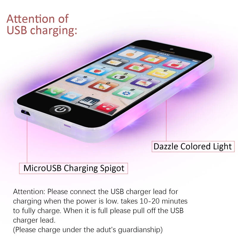 Educational Learning Toys Cell Phone for Kids Age 2 3 4 5 6 7 Years Old Boy Girl FEATURES: *Boasts 8 different modes and plenty of sound effects. *The Y Phone feeds curiosity to learn through touch, sound and sight. *The Toy Phone has the same appearance specifications as the iPhone *Rechargeable with Type-C USB (included). On/off switch on the bottom. *Lights flash in multi colors around the edges when a button is pressed, very visually stimulating. SPECIFICATIONS: Recommended Age Range: 3+ Feature: 8 Large Function Gender: Boy & Girl Theme: Role Play Cell Phone Style: Educational Toy, Musical Toy Material: Plastic Plastic Type: ABS Category: Phone Product size: 15.5*9*1.3cm /6.1*3.5*0.5inch Color: Black Language: English Charging : Type-C USB Connect (Included) Item name: Children touching screen English learning talking y-phone toy. PACKAGE INCLUDED: 1 x Toy Cellphone Payment Delivery details Terms of sales About us Contact us Payment Payments: Paypal, Google Pay, Visa, Master Card, Amerian Express, Discover. Delivery details All items are shipped from US warehouse located at NJ . We ship to your eBay or Paypal address. Please make sure your eBay or Paypal address is correct before you pay. Terms of sales Free return About us Pls contact our customer service firstly if have any problems , we will help to solve the issue, and could offer free return service for full refund or free replacement after confirming. You can buy from us with confidence Contact us If have any problems, please feel free to contact us.