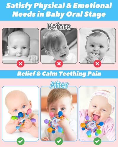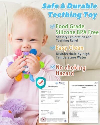 Free eBay listing template designed by dewiso.com Baby Teething Toys for 0-6 6-12 Months Ages 0-2, Tummy Time Montessori Toys for Babies 0 3 6 9 12 18 Months, Newborn Infant Sensory Toys Easter Basket Stuffers Gifts for Boys Girls FREE AND FAST SHIPPING! About this item Baby Multi-Sensory Teething Toys: Tonberless hand-held baby teething toys, the baby will have the habit of biting or crying, eating hands. The 360-degree rotary teething ball has 12 chew points and different textured surfaces. Massage the gums to relieve teething pain more effectively and meet the needs of the baby's oral stage. Different textures provide a stimulating touch and help the baby's sensory development. Montessori Developmental Toys: This teething toy can also be used as a rocking toy, because it is colorful, has different textures, and makes a clicking sound when shaking, which is very attractive to the baby's attention. It is a combination of audio-visual development, grip training, colour perception and massage pressure bed. Safe & High Quality: Our hand-held baby teething toys are made of food-grade grindable silicone and ABS, certified by ASTM and CPC, are BPA-free, non-toxic, do not have any sharp edges, and protect your baby's lips and gums. They are small enough to fit a baby's mouth, with soft balls at the tips, and are soft enough to chew without choking or hurting the back of the throat. Easy to Clean: Babies aged 0-6 months and 6-12 months must be completely disinfected before using our teething toys. Baby teether is made of heat-resistant material and can be disinfected with ultraviolet light, boiling water and steam. (Tips: do not soak in boiling water for more than 1 minute) After your baby plays, just clean it with baby wipes. Newborn & Infant Great Gifts: When your baby starts sucking, you can choose our teething toys, which your baby can use safely without parental supervision. This baby toy is suitable for newborns aged 0-3, 3-6, 6-12 months. The ideal baby gift, stocking stuffers, easter basket stuffers for girls and boys, including birthday, Christmas, Thanksgiving, Easter, Halloween, and New Year's gifts. Product We offer a 30-Day Return Policy on items which you are not completely satisfied with. You have the option for a full-refund or an exchange of the item. No returns are available on items shipped outside of the US . Shipping We offer Free Shipping to the US and ship within 2 business days of payment, usually sooner. We use UPS express shipping. That's why your products are usually delivered within 3 days . Contact We try our very best to make sure every customer is completely satisfied. If there's a problem , message us! We're happy to help. 24/7 live chat available.