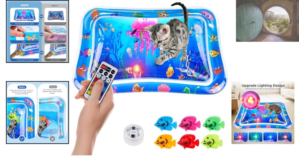Interactive Waterproof Cat Water Mat with Floating Fish & Colorful Lights ‹ › ‹ › ‹ › ‹ › ‹ › ‹ › ‹ › ‹ › Interactive Waterproof Cat Water Mat Engage your feline friend with an enchanting experience that combines play and comfort like never before! This innovative cat water mat features a waterproof LED light module that automatically cycles through 7 mesmerizing colors (red, blue, green, purple, and more), mimicking the movements of natural prey. Stimulate your cat's hunting instincts and watch them delight in extended playtime. Features: 7 vibrant, cycling LED colors to captivate your cat's attention. Constructed from upgraded thickened PVC material (1mm thickness), 5 times tougher than standard mats. Anti-scratch technology allows your cat to scratch without damaging the mat. Floating 3D fish that mimic lifelike movements to entice active play. Reduces stress while keeping your cat cool in warm weather. Easy and quick setup with a garden hose or faucet; no leaks guaranteed. Hassle-free cleaning: simply drain and wipe down after use. Benefits: Enhances your cat's engagement and hunting instincts. Provides comfort and a cooling effect during hot days. Encourages interactive play and bonding between pet and owner. Durable design ensures long-lasting enjoyment. Versatile for various indoor or outdoor settings. Why choose our Interactive Cat Water Mat? Explore a world of wonder for your cat with our Interactive Waterproof Cat Water Mat. Unlike other products on the market, this mat offers a unique blend of stimulating colors and engaging textures that will keep your cat captivated while providing them with the comfort they crave. With its robust construction and fail-safe setup, this mat is not only a play area but also a stress-relief zone. Elevate your cat's playtime experience today and witness the joy it brings! Transform your pet's playtime—order the Interactive Waterproof Cat Water Mat now! Shipping Free & Fast Shipping - We offer free shipping to most of the USA with a normal delivery time of 3-7 days. However, due to the current situation, additional delivery time (up to 3 weeks) may be required for some items. Alternative Carriers - We may use alternative carriers (e.g. USPS, FedEx, UPS, etc.) to ensure your package arrives safely and on time. Due to the use of multiple carriers, we are unable to provide a tracking number automatically. Handling Time - Orders are processed and shipped within 1-2 business days of receiving cleared payment. Shipping Restrictions - Shipping to Alaska, Hawaii, Puerto Rico, Guam, and other US territories may incur shipping charges or delivery restrictions. Please contact us before ordering, or your order can be refunded/cancelled. State Restrictions - There may be restrictions based on your state of purchase. For example, certain items may not be shipped to California due to state regulations. Contact for Tracking Updates - If you require tracking updates or have any concerns about the delivery of your order, please feel free to contact us, and we will be happy to assist you. Return 30-Day Hassle-Free Returns - We want you to be completely satisfied with your purchase. If you are not, you can return the item within 30 days of receiving it for a full refund or exchange. Easy Return Process - To start a return, simply contact us and we will provide you with a prepaid return shipping label and detailed instructions. Restocking Fee - There are no restocking fees for returns. However, the buyer is responsible for return shipping costs if the return is not due to a seller's error. Refund Processing Time - Refunds will be processed within 5 business days of receiving the returned item in its condition. Payment We accept all major credit cards, PayPal, and Apple Pay for your convenience. Your payment information is secure and encrypted to ensure a safe and seamless transaction. Please complete your payment within 3 days of purchase to avoid any delays in shipping. Feedback Your feedback is extremely important to us. We strive to provide the best products and customer service possible. If you are satisfied with your purchase, please take a moment to leave us a positive review. If you have any concerns or issues with your order, please contact us before leaving negative feedback. We are committed to resolving any problems and ensuring your satisfaction. Contact Us If you have any questions or concerns, please feel free to out to our customer support team. You can contact us through the eBay messaging system. We are available Monday to Friday, 9:00 am to 5:00 pm EST, and we will do our best to respond to your inquiry within 24 hours. Buy it now and enjoy a pleasant shopping experience! Model: Interactive Cat Toy Mat MPN: Interactive_Cat_Toy_Mat Unit Quantity: 1.0 count Features: Interactive Cat Toy Mat Type: Interactive Toy