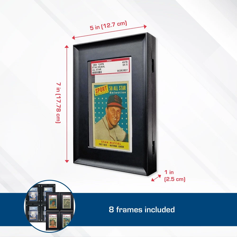 CUSTOMIZABLE: The interlocking technology allows you to attach them to each other vertically and/or horizontally to create your own case - or use as individual frames - or both! The user-friendly design makes it easy to switch it up whenever you want SHOW OFF YOUR FAVORITE CARDS: The interlocking card frames are designed to showcase your sports cards, gaming cards, and collectible trading cards, offering a polished and elegant presentation. The sleek black frame matches any space, making it perfect for offices, man caves, game-rooms and more. SPORTS, GAMING AND COLLECTIBLE CARDS: Showcase a wide range of collectible cards, including baseball cards, football cards, basketball cards, hockey cards, soccer cards, Magic the Gathering (MTG) cards, Pokemon cards, Yugioh cards and more. The frame allows for horizontal or vertical use and offers design flexibility to suit your preferences.