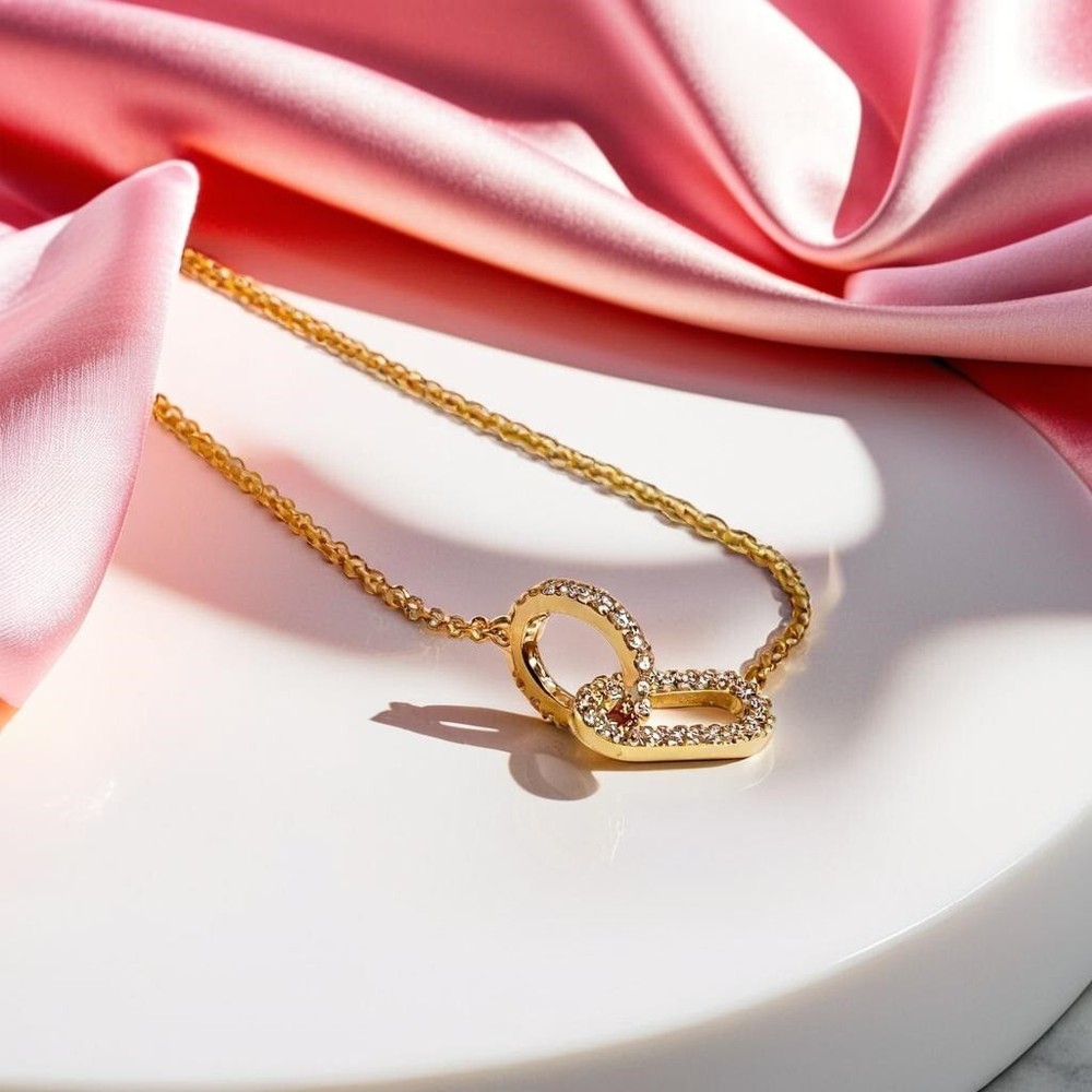 Discover the allure of simplicity with our chic interlocking link gold plated necklace. This elegant piece boasts a delicate chain and a contemporary design, making it a versatile accessory for both casual and formal ensembles. A thoughtful gift for women who appreciate understated sophistication.