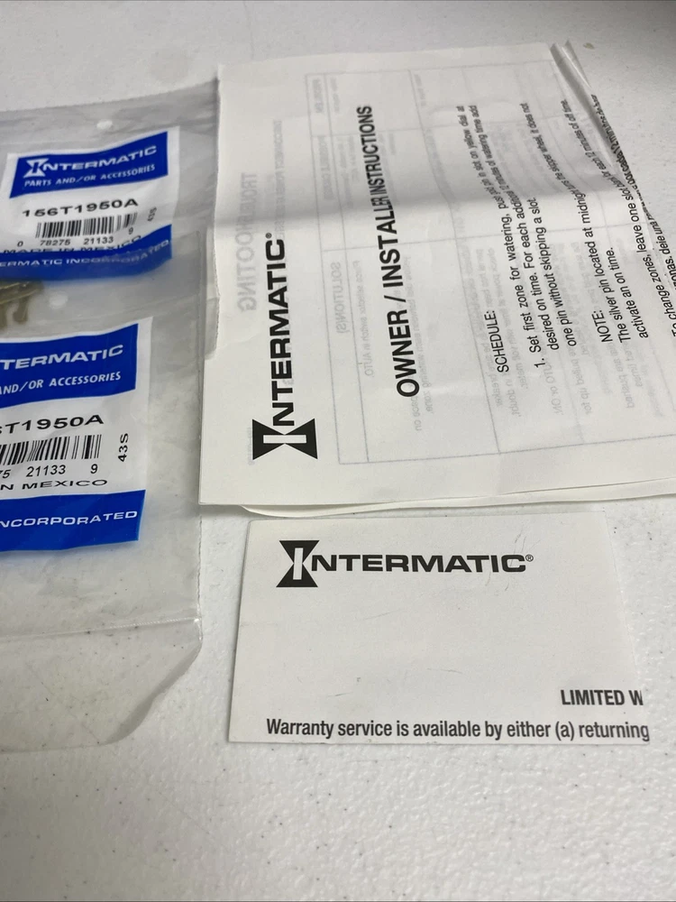 Watering Duration:Up to 10 HoursNumber of Zones:1Color:Graygtin13:0078275700758Model:T8805P101CIndoor/Outdoor:Indoor & OutdoorUPC:0078275700758Suitable For:Flexible Automatic Irrigation with Individual Watering SchedulesFeatures:Temperature Difference Measurement, Smart Schedules, Auto-Off, Selectable WeekdaysType:Timer SwitchPower Source:HardwiredSmart Home Protocol:Not Applicable/Not AvailableControl Style:Analog/MechanicalMPN:T8805P101CNumber of Items in Set:1Brand:IntermaticMaterial:ABS, PlasticNumber of Outlets:1Item Weight:43.2 oz