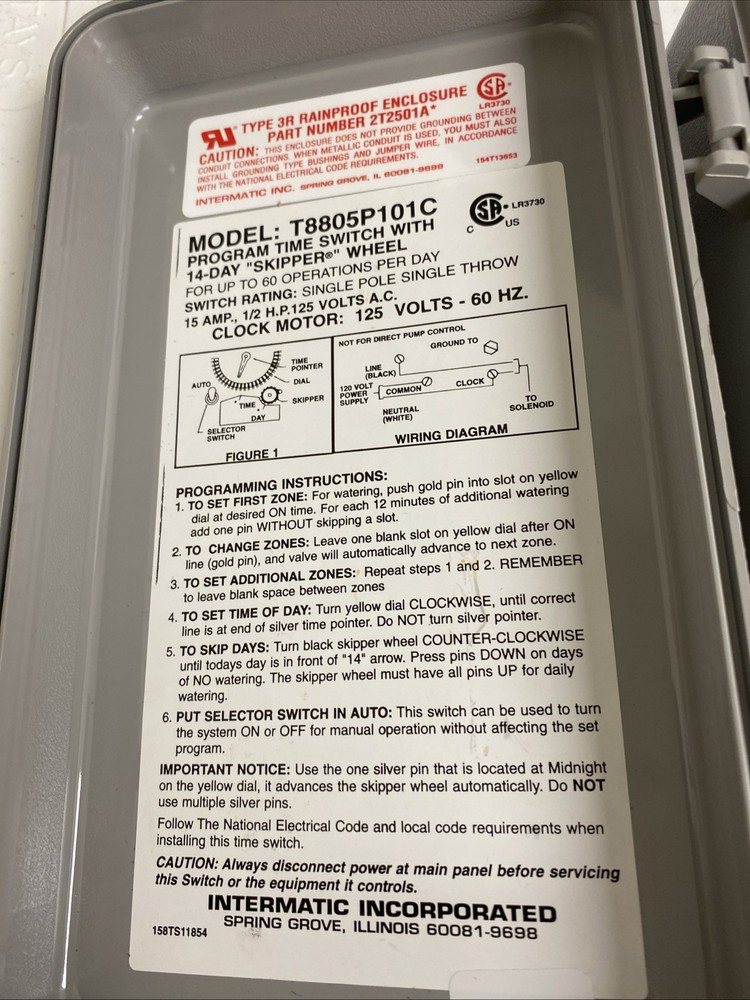 Intermatic T8805P101C 1/2 HP IndoorOutdoor Irrigation/Sprinkler Timer NEW