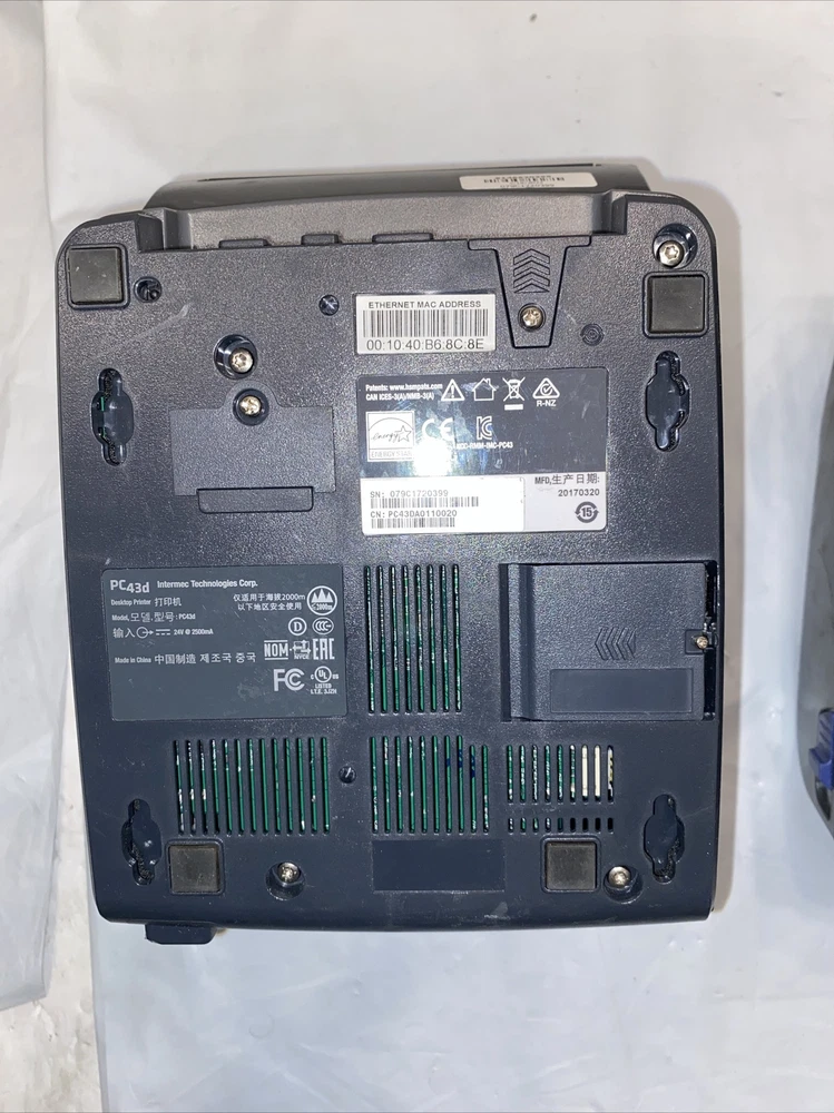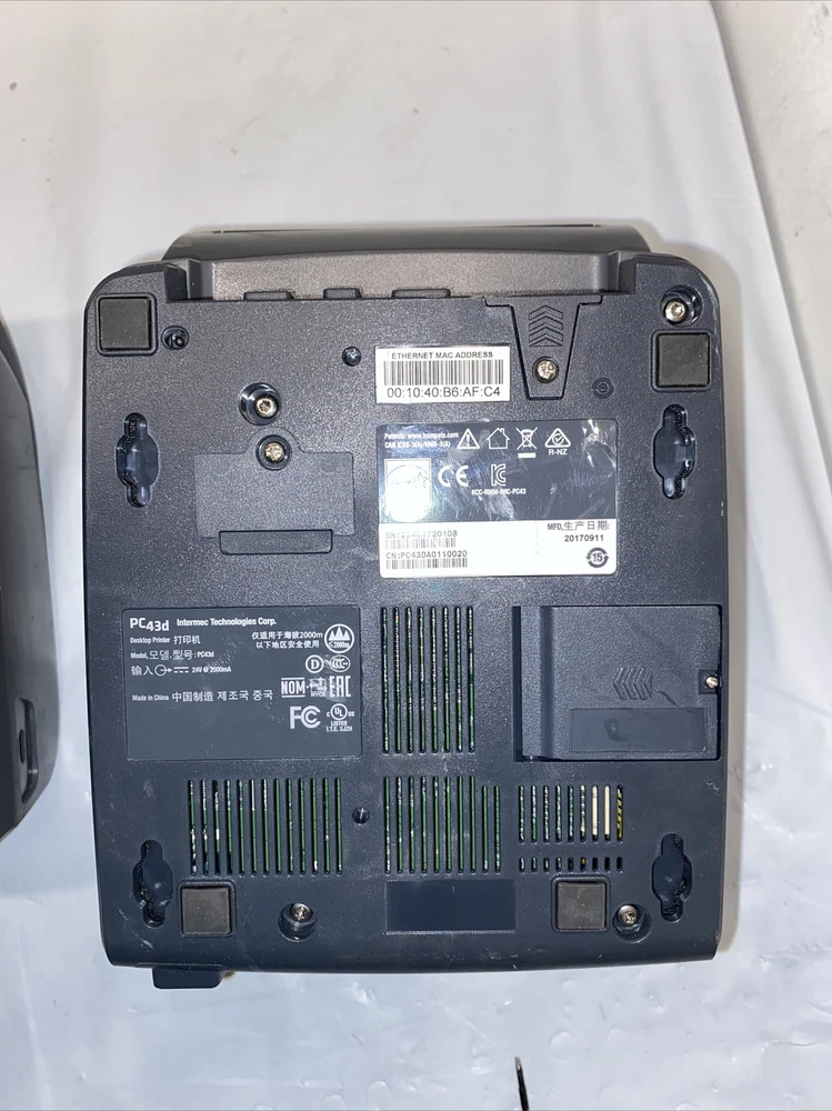 gtin13:Does Not ApplyType:PC43DTechnology:ThermalUPC:Does Not ApplyBrand:IntermecMPN:PC43DSeller Notes:“Lot Of 2 Intermec PC43D Direct Thermal Printer No Power Adapter Same As Pictures”