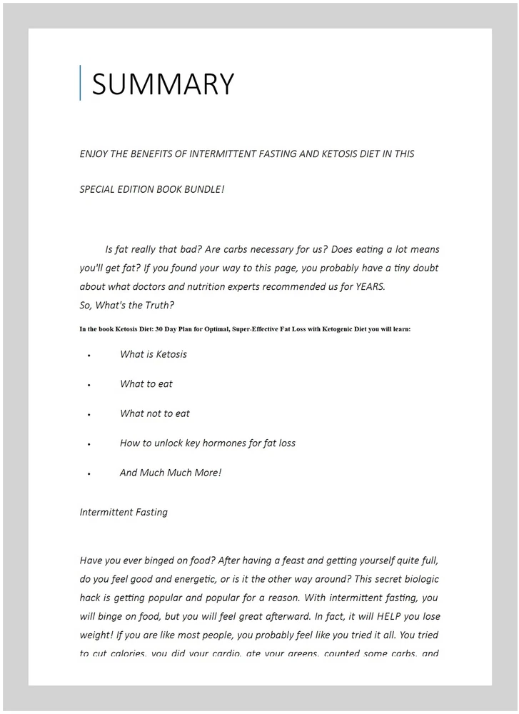 Intermittent Fasting, Paperback by Blum, Steve, ISBN 1544139829, ISBN-13 9781544139821, Brand New, Free shipping in the US Enjoy The Benefits of Intermittent Fasting AND Ketosis Diet in this Special Edition Book Bundle! Is fat really that bad? Are carbs necessary for us? Does eating a lot means you'll get fat? If you found your way to this page, you probably have a tiny doubt about what doctors and nutrition experts recommended us for YEARS. So, What's the Truth? In th Ketosis Diet: 30 Day Plan for Optimal, Super-Effective Fat Loss with Ketogenic Diet you will learn: What is Ketosis What to eat What not to eat How to unlock key hormones for fat loss And Much Much More! Intermittent Fasting Have you ever binged on food? After having a feast and getting yourself quite full, do you feel good and energetic, or is it the other way around? This secret biologic hack is getting popular and popular for a reason. With intermittent fasting, you will binge on food, but you will feel great afterward. In fact, it will HELP you lose weight! If you are like most people, you probably feel like you tried it all. You tried to cut calories, you did your cardio, ate your greens, counted some carbs, and what's not. If you found your way to this page, you probably look for something you can finally stick to in the long-term. Something sustainable which generates RESULTS. In this book, you will find one of the most effective methods for weight loss, and even muscle growth. It's called intermittent fasting, and it will change your life. In this book you'll learn: What really matters when it comes to weight loss How to gain more muscle, optimize fat loss, and achieve super-human focus How to finally break free from a food-driven lifestyle How to unlock key hormones that are vital to your fat burning process And much, much more! You may not be aware, but you actually fast every day. This was how the term, breakfast, came about. It is the meal that is intended to break the fast that you voluntarily subject yourself to while you sleep. All you have to do is extend this fast a little more, and you will be shocked by the results! What’s inside Everything you need to know about fasting Different approaches and methods of fasting Essential tips to make YOUR diet work Frequently asked questions about intermittent fasting And Much, MUCH more! Take The First Step NOW - Scroll Up, Click The Buy Button and Start Reading!