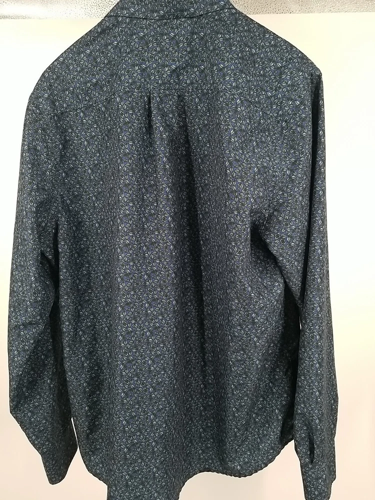 For sale is a stylish and versatile men's dress shirt from International Report. This shirt features a collared neckline, button-down closure, and long sleeves with floral pattern. It's perfect for a variety of occasions such as travel, weddings, parties, business, or casual wear. Made from a woven fabric with a blend of polyester and cotton, this shirt is comfortable and durable. The accents include buttons and its fit is regular for a comfortable wear. The shirt is size Large and the neck size is normal. Please refer to the provided aspects for more details. In preowned condition,see pics for details. Measurements are approximate. Top to bottom 32 inches Pit to pit 24 inches Sleeve 27 inches