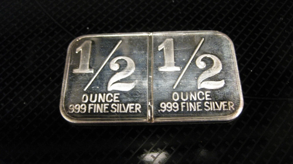 international trade unit 1 oz fine silver bar marked in 1\2 oz shows toning I have other silver listed