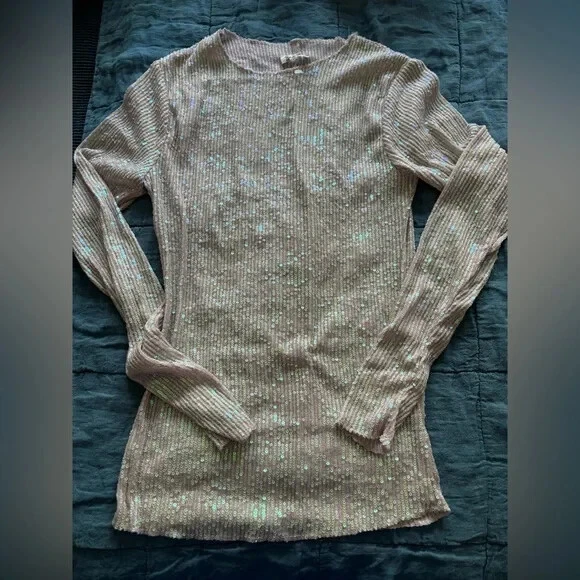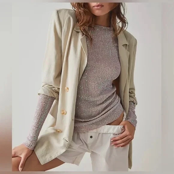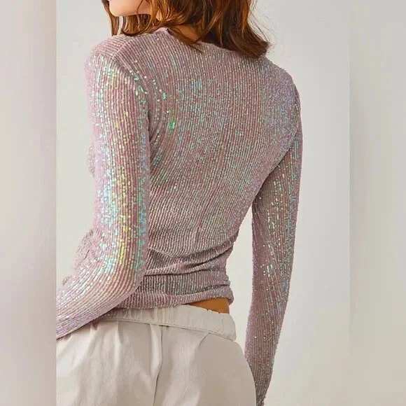Step into the spotlight with the Free People x Intimately FP Gold Rush Long Sleeve. Illuminate the night with allover sequin magic and semi-sheer fabric. Versatile enough to pair with trousers or a mini skirt, it's your go-to for dressing up or down. 93% polyester 7% elastane Made in Vietnam Hand wash Allover sequin embellishments Garment is made with a semi-sheer fabric, undergarments can show through