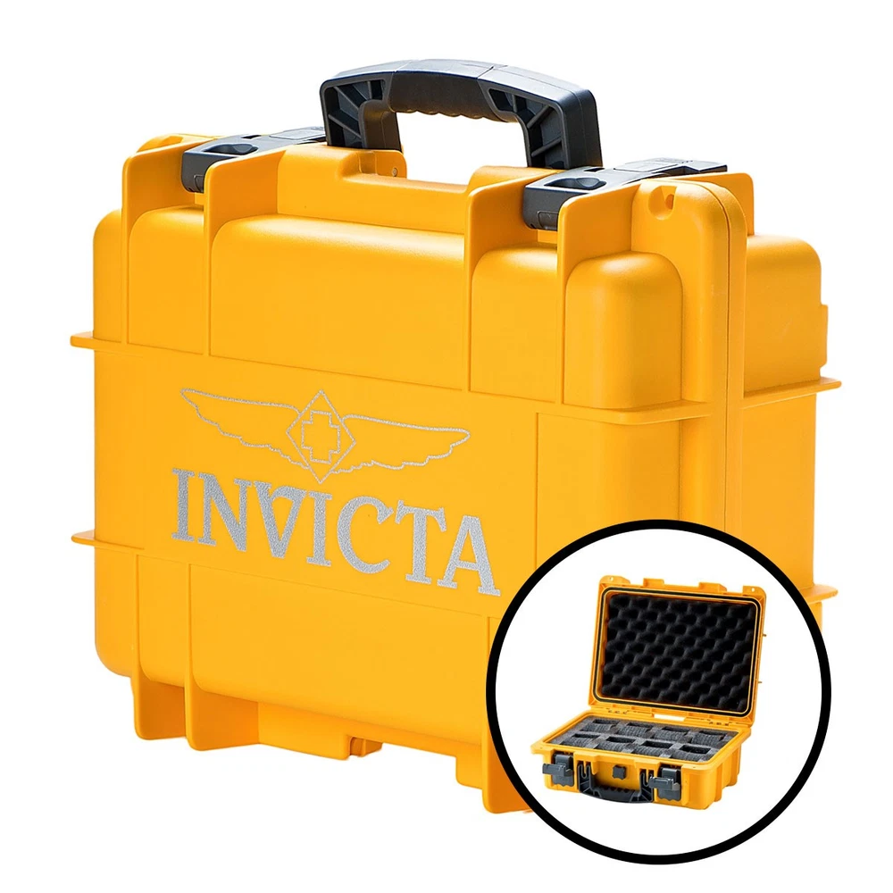 This watch case is an awesome deal for any collector! Despite the minor glued tab (barely noticeable), it works perfectly and looks brand new. Holds 8 watches securely, and the bright yellow color looks sharp. Great for keeping Invicta watches organized—super sturdy and spacious. Definitely worth it for the price, especially since it’s authentic and unused otherwise. Love the size, too—plenty of room without being bulky. Highly recommend for anyone with multiple watches!