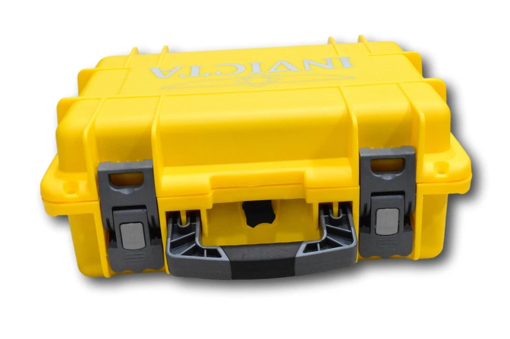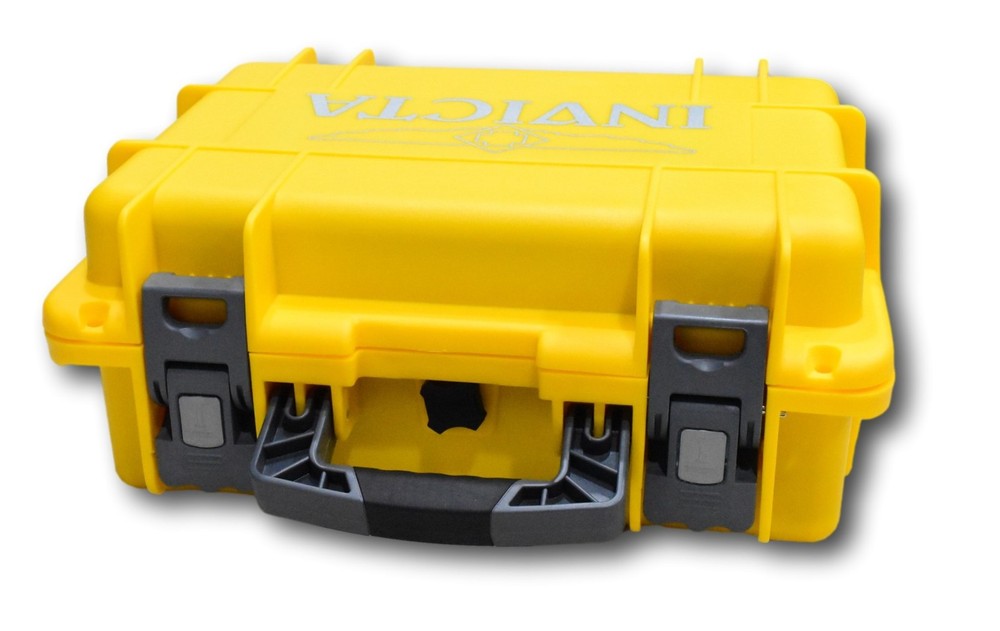New - With Defects One of the plastic tabs in the gray handle came off and has been glued in place - minor glue residue may be visible - 100% functional, just a minor cosmetic issue, not super noticeable - see pictures for details - watch case is otherwise Brand New Watch Case - Never Used - Great Deal for collector or someone with multiple Invicta watches Guaranteed Authentic - Ordered from Invicta -100% Functional Items included: No additional accessories Box Measurements: 11-1/2" L x 15-1/2" W x 6-1/2"H Individual Slot Measurements: 3-1/2"L x 2-1/4"W x 3-1/2"H
