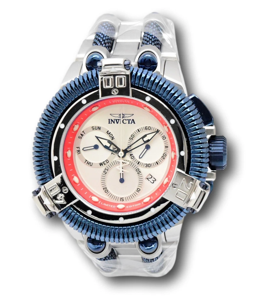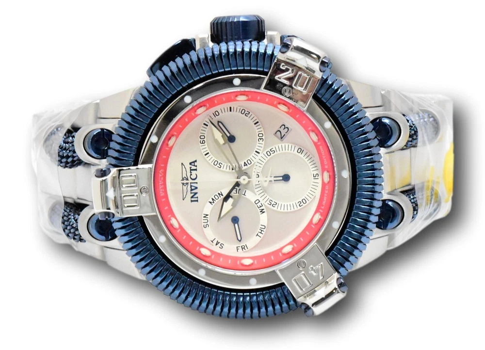 New - With Tags New and Unworn - Guaranteed Authentic - Includes Yellow Invicta box and Warranty Card 100% Functional - This listing includes pictures of the actual watches for sale This is a Limited Edition King Python watch - features Z60 Swiss Chronograph movement with day and date functions. Luminous hands and hour markers - screw down crown for 200M water resistance - rotating bezel - Case Size: 50mm or about 60 mm wide including the crown Thickness: 20.5mm Weight: about 13.7 ounces Items included: Yellow Invicta box and Warranty Card Max wrist size: 8.20 Inches Case and Dial Case Size: 50.0mm Case Material: Stainless Steel Bezel Material: Stainless Steel Bezel Color: Steel, Dark Blue Crown Type: Screw Down Crystal Type: Flame Fusion Dial Material: Metal Movement Components: Swiss Caliber: Z60 Function Type: Quartz Water Resistance Water Resistance: 200m Band Material: Stainless Steel Tone: Steel, Dark Blue Length: 210mm Size: 33.50mm Top Selling Disney Super Hero Star Wars New in Stcok TechnoMarine Contact Us Invicta Reserve King Python Men's 50mm Limited Silver Swiss Chrono Watch 46245 New - With Tags New and Unworn - Guaranteed Authentic - Includes Yellow Invicta box and Warranty Card 100% Functional - This listing includes pictures of the actual watches for sale This is a Limited Edition King Python watch - features Z60 Swiss Chronograph movement with day and date functions. Luminous hands and hour markers - screw down crown for 200M water resistance - rotating bezel - Case Size: 50mm or about 60 mm wide including the crown Thickness: 20.5mm Weight: about 13.7 ounces Items included: Yellow Invicta box and Warranty Card Max wrist size: 8.20 Inches Case and Dial Case Size: 50.0mm Case Material: Stainless Steel Bezel Material: Stainless Steel Bezel Color: Steel, Dark Blue Crown Type: Screw Down Crystal Type: Flame Fusion Dial Material: Metal Movement Components: Swiss Caliber: Z60 Function Type: Quartz Water Resistance Water Resistance: 200m Band Material: Stainless Steel Tone: Steel, Dark Blue Length: 210mm Size: 33.50mm This item includes a 100% Money-Back Guarantee! If you're not completely satisfied with your purchase, just send it back in the same condition within 60 days and we will refund the full purchase price of the item. We'll even cover the return shipping! (Only applies to USA orders). Please Note: We do not cover water damage for watches. We do not test or verify manufacturer's water resistance claims. Please use your watch in water at your own risk. To receive free return shipping: Next to this item in your ebay purchase history, click on "Return this item." Please choose "Changed-mind" as the reason for the return. This will allow you to print a pre-paid return shipping label. - Klawk Watches - We have been in business for over 8 years, with more than 25,000 customers from around the world. We specialize in Invicta watches and have many models that can't be found anywhere else. We have some of the lowest prices - and you won't find better customer service. We try to provide the best customer service possible. We hand-inspect each watch and test them to make sure they are completely functional before shipping them out. We also include a no-hassle 60-day warranty on all of our watches (this warranty only covers defects in the watch movement). Our 60-day warranty does not cover any damage from water or moisture. Neither Klawkwatches nor any manufacturer covers water damage under warranty. Use your watch in water at your own risk. We're happy to help! If you have any questions, Please let us know and we will get back to you within 24 hours. Shipping Returns Shipping Shipping Returns Shipping Orders are shipped daily. We generally ship items within 24 hours of receiving payment. We offer standard, Prioirty, and overnight shipping services. You can upgrade your shipping speed at checkout for the difference in shipping costs. Unless a shipping upgrade is purchased, items will generally ship as a First Class Package, the normal arrival time is 3-5 business days starting the day after the item is shipped. We do all of our international shipping through the eBay global shipping program. We ship the item to the eBay global shipping center and they will ship the item to you. eBay determines the international shipping costs and import fees for the item based on the item weight and your location. International shipments can take between 2-4 weeks to arrive depending on your location. Shipping Returns Returns Shipping Returns Returns If you're not completely satisfied with your purchase, you are welcome to return it within 60 days for a full refund. We will generally cover the return shipping costs if you are not satisfied with your purchase. Next to the item in your purchase history, you can click on "More Options" and "Return this item". This will allow you to print a pre-paid return shipping label. For international orders and returns, please contact us to make return arrangements.