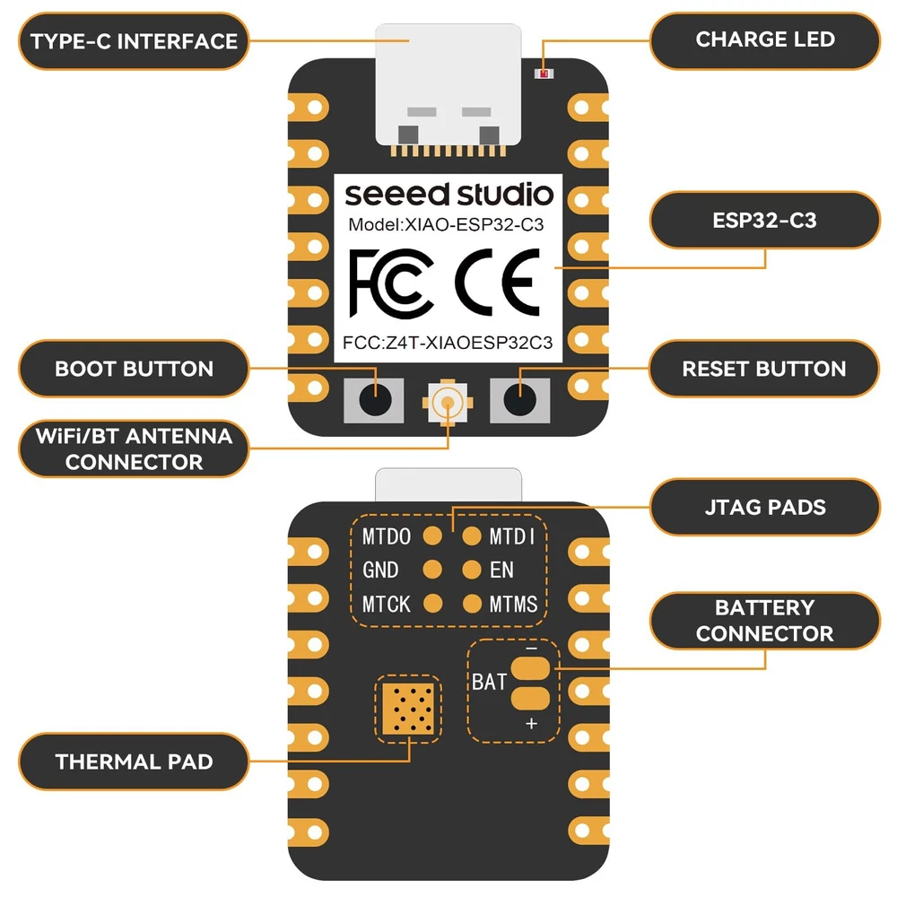 IoT Mini Development Board XIAO ESP32C3 - RISC-V Tiny MCU Board with Wi-Fi & Bluetooth 5.0, Battery Charge Supported, Power Efficiency & Rich Interface (3 Pack) IoT Mini Development Board XIAO ESP32C3 - RISC-V Tiny MCU Board with Wi-Fi & Bluetooth 5.0, Battery Charge Supported, Power Efficiency & Rich Interface (3 Pack) Product Overview Description XIAO ESP32C3 has equipped a highly-integrated ESP32-C3 chip, built around a 32-bit RISC-V chip processor with a four-stage pipeline that operates at up to 160 MHz. The board equips highly-integrated ESP32-C3 SoC. The chip has been installed with a complete 2.4GHz Wi-Fi subsystem which means it supports Station mode, SoftAP mode, SoftAP & Station mode, and promiscuous mode for multiple Wi-Fi applications. It works under an ultra-low power state, also supporting features of Bluetooth 5 and Bluetooth mesh. There are 400 KB SRAM & 4 MB Flash on the chip, allowing for more programming space, and bringing more possibilities to the IoT control scenarios. Being a number to the XIAO family, the board deservedly maintains the classic thumb-sized form-factor design and elegant productization of single-sided components mounting. Meanwhile, it has equipped with a battery charge chip and integrated circuit for enhancing its ability to carry. This board comes included with an external antenna to increase the signal strength for wireless applications. There are 11 digital I/O that can be used as PWM pins and 4 analog i/o that can be used as ADC pins. It supports UART, IIC, and SPI serial communication ports. Utilizing its small and exquisite hardware design and the powerful onboard chip, programming by Arduino, it will offer more ability to wearable and portable devices or other applications. Please be noted that the pins are not included in this product. If you require the pins, please visit the following page to make a purchase. Key Features XIAO ESP32C3 has equipped a highly-integrated ESP32-C3 chip, built around a 32-bit RISC-V chip processor with a four-stage pipeline that operates at up to 160 MHz. There are 400 KB SRAM & 4 MB Flash on the chip, allowing for more programming space, and bringing more possibilities to the IoT control scenarios XIAO ESP32C3 board equips highly-integrated ESP32-C3 SoC. The chip has been installed with a complete 2.4GHz Wi-Fi subsystem which means it supports Station mode, SoftAP mode, SoftAP & Station mode, and promiscuous mode for multiple Wi-Fi applications. Works under an ultra-low power state, also supporting features of Bluetooth 5 and Bluetooth mesh Being a number to the XIAO family, the board deservedly maintains the classic thumb-sized form-factor design and elegant productization of single-sided components mounting. Meanwhile, it has equipped with a battery charge chip and integrated circuit for enhancing its ability to carry XIAO ESP32C3 board comes included with an external antenna to increase the signal strength for wireless applications. There are 11 digital I/O that can be used as PWM pins and 4 analog i/o that can be used as ADC pins. It supports UART, IIC, and SPI serial communication ports Starter Kit with free Course for all Electronics Neophytes and Enthusiasts(Please contact us if necessary)has provided the Grove Starter Kit along with free and detailed courses for you quickly get started with microcontrollers and electronics, regarding all the XIAO boards, promising you a great learning experience Return Policy ⦿ You may return the item within 30 days. Contact us via eBay messaging for return instructions. ⦿ We guarantee your satisfaction. Any issues will be resolved promptly. ⦿ Free shipping and returns with a 30-day money-back guarantee. ⦿ Please contact us for the return shipping address. Shipping Information ⦿ We ship to the address provided on eBay. Please ensure it is accurate. ⦿ Standard delivery time is 3-5 business days. ⦿ We use reputable shipping services such as UPS, FedEx, and USPS. ⦿ Currently, we ship only within the 48 contiguous states of the USA. ⦿ For any shipping concerns, feel free to contact us. Customer Support ⦿ For any inquiries, please contact us via eBay messaging. We typically respond within 24 hours. ⦿ Customer satisfaction is our top priority. ⦿ If you encounter any issues, please contact us before leaving feedback, and we will do our best to resolve them. About Us We are committed to providing high-quality products at competitive prices, ensuring that our customers receive the best value. Our team is dedicated to delivering exceptional customer service and a seamless shopping experience. With years of experience in the industry, we have established strong relationships with suppliers, enabling us to offer a diverse range of products. We continuously strive to expand our product selection and improve our services to exceed customer expectations. Our mission is to achieve 100% customer satisfaction by addressing any concerns promptly and effectively. Thank you for choosing our store. We look forward to serving you again and making your shopping experience delightful.