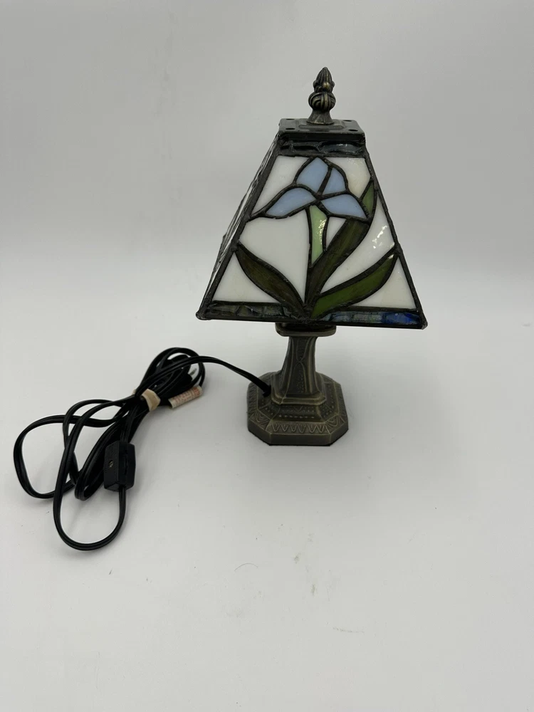 Made by Tiffanyfactory.com Excellent condition Features: Base Finish: Antique Brass Material: Metal Socket: ONOFF Number of Bulbs: 1 Wattage: 25W Switch: Inline Specifications: Overall Product Dimension: 11"H x 6"W x 6"D Product Weight: 2 lbs