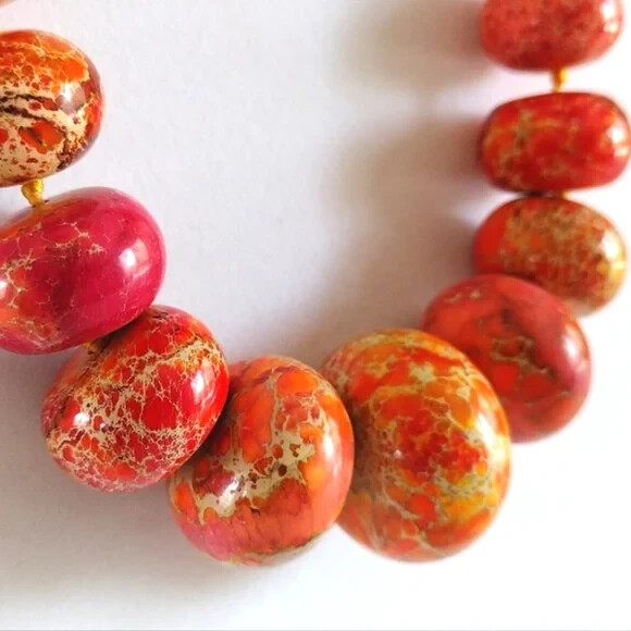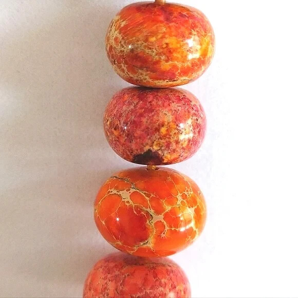 Elevate your accessory collection with the Iris & Lily Orange Natural Jasper Stone Necklace. This piece beautifully showcases a series of exquisite orange beads, each one carefully selected to create a harmonious and eye-catching display of color. The beaded style lends a playful yet sophisticated charm to the necklace, making it a versatile choice for both casual and formal wear. Designed with a thoughtful lobster closure for secure fastening, the necklace measures 20 inches in length, resting perfectly around the collarbone. The main stone color is a vibrant orange, complemented by the nature-inspired theme that adds a touch of the outdoors to any outfit. Whether you're dressing up for an evening out or adding a splash of color to your daywear, this necklace is sure to become a cherished piece in your collection.