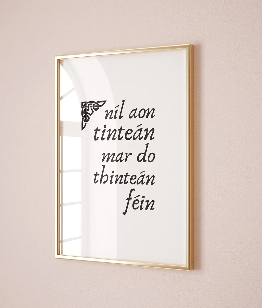 Irish Gifts Irish Prints There's No Place Like Home Gaeilge Ireland Print New Home Gaelic Wall Art Prints Material: Premium luster photo paper Print type: Inkjet printing One side printed + The finish provides the highest possible resolution and color saturation + Lasts up to 200 years in color and 400 years in black-and-white + Printed on high-quality resin-coated photo base paper medium + Posters can be hung with double-sided tape, tacks, or framed + Hand washing with a gentle cry cloth is recommended for extended durability I will hand select the best choice of paper for your chosen design to ensure top quality results for a beautiful, bright and luxurious print. All prints are sealed in cellophane slips for protection during transportation, and are shipped in a protective cardboard envelope.