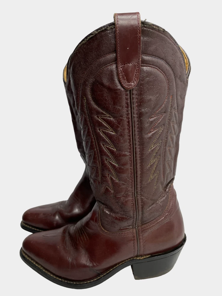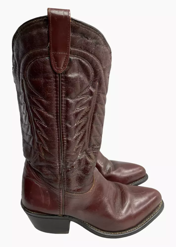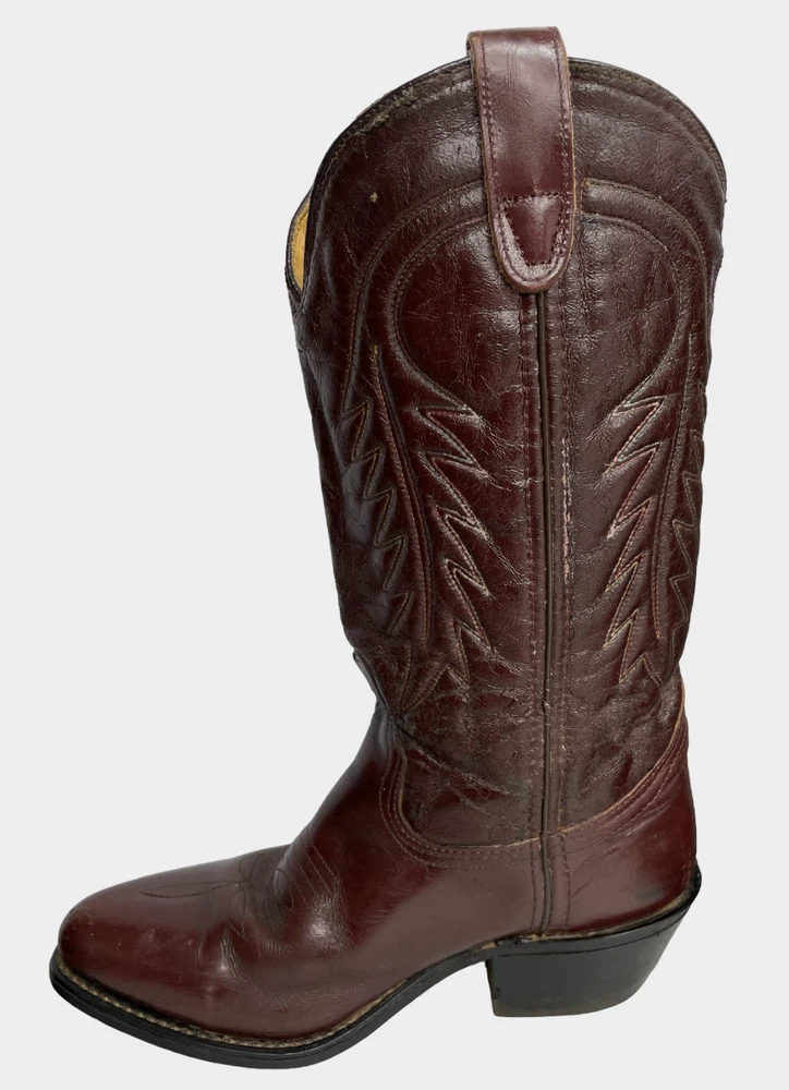 Theme: Biker, Cowboy, Motorcycle, Western Features: Comfort, Steel Toe Color: Brown US Shoe Size: 6.5 Model: K7496227 Shoe Width: M Accents: Embroidered Style: Western Type: Boot Upper Material: Leather Brand: Iron Age Closure: Pull On Department: Men Toe Shape: Pointed Toe Pattern: Western